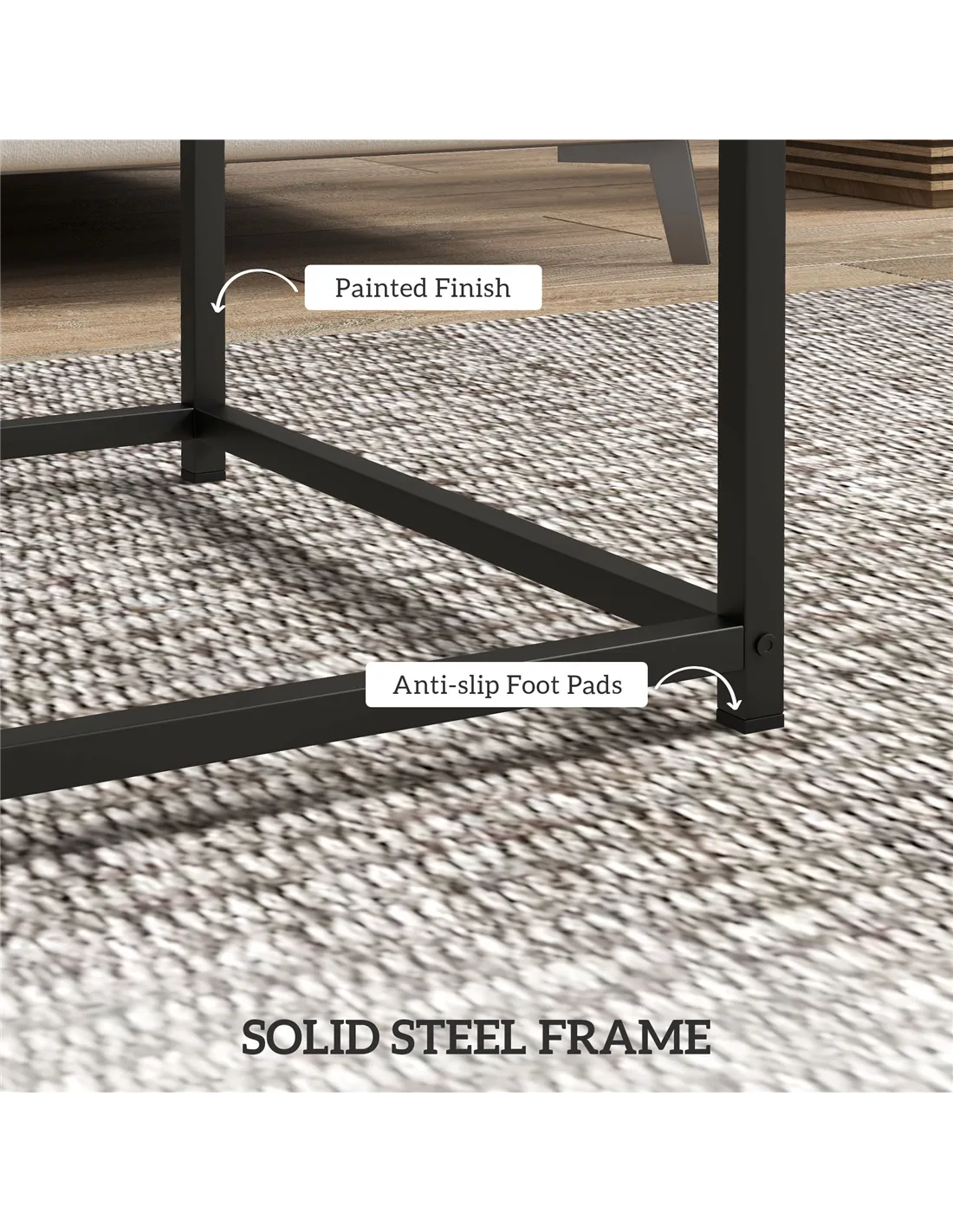 - Non-slip foot pads protect the floor from scratches