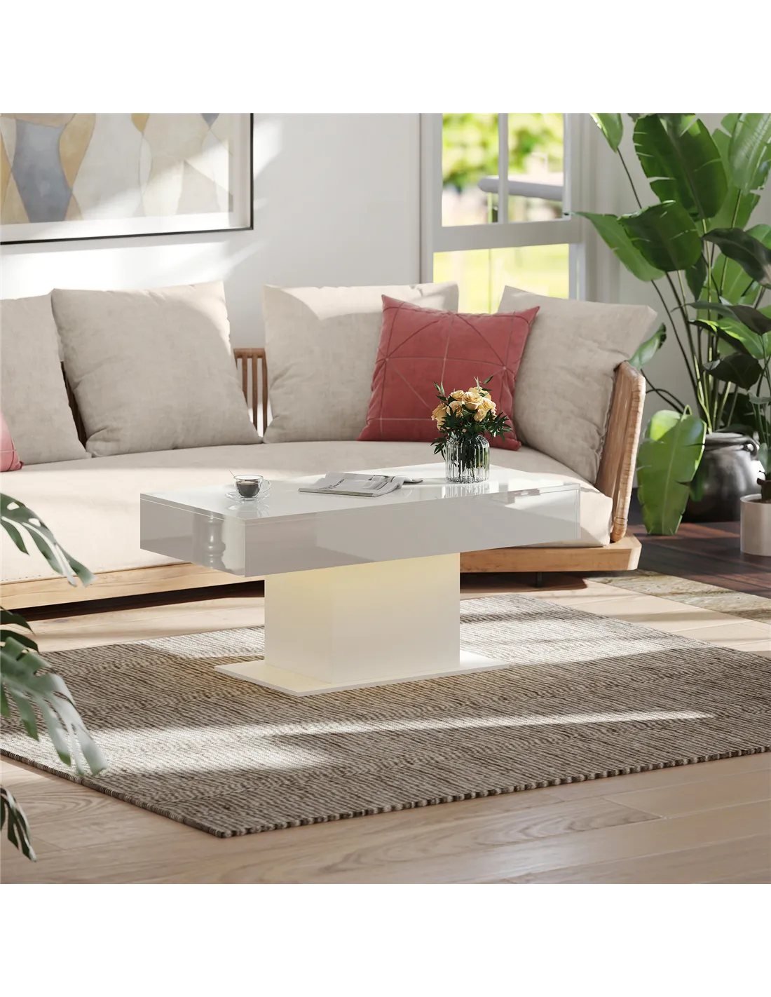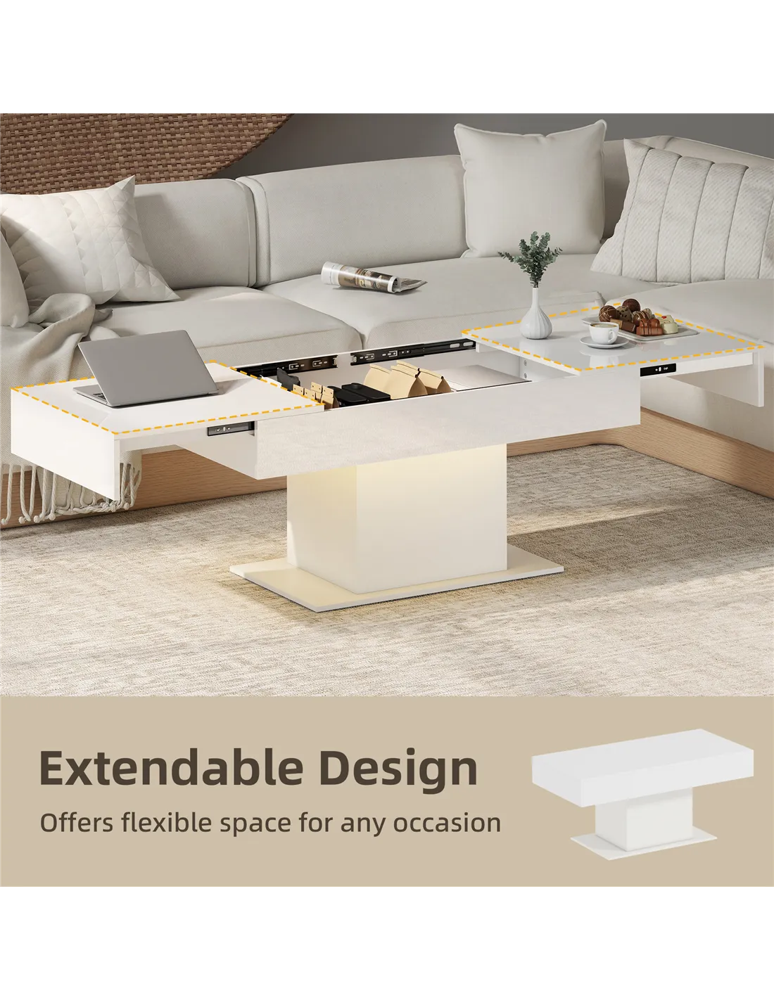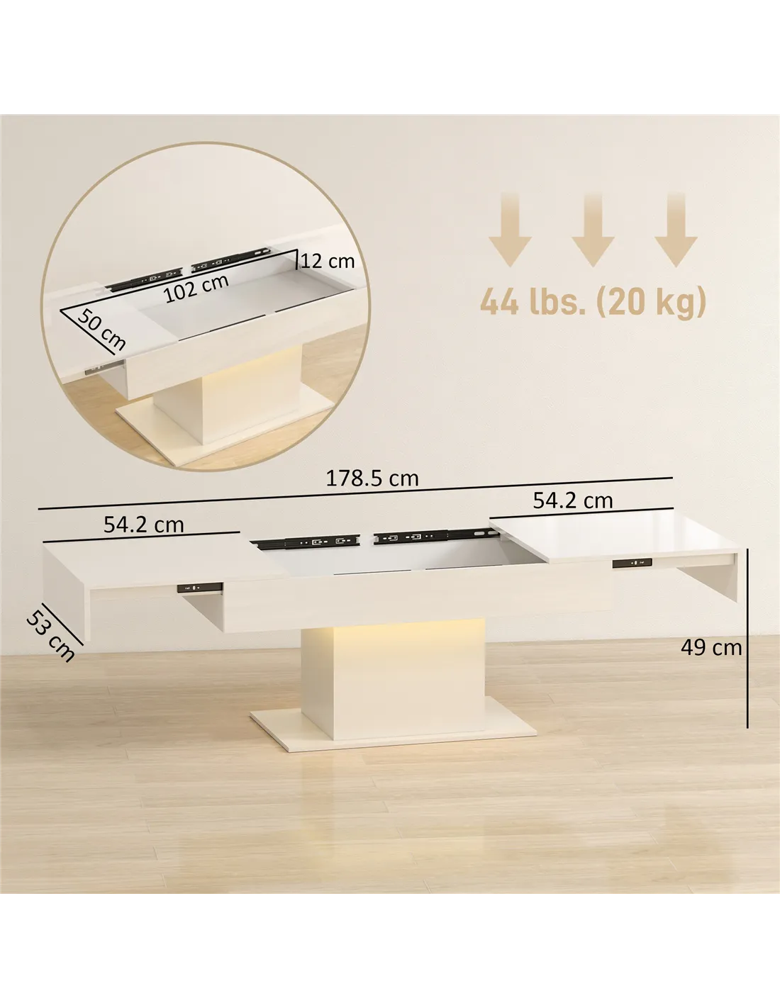 HOMCOM Extendable Coffee Table with LED Lights and Storage - High Gloss White