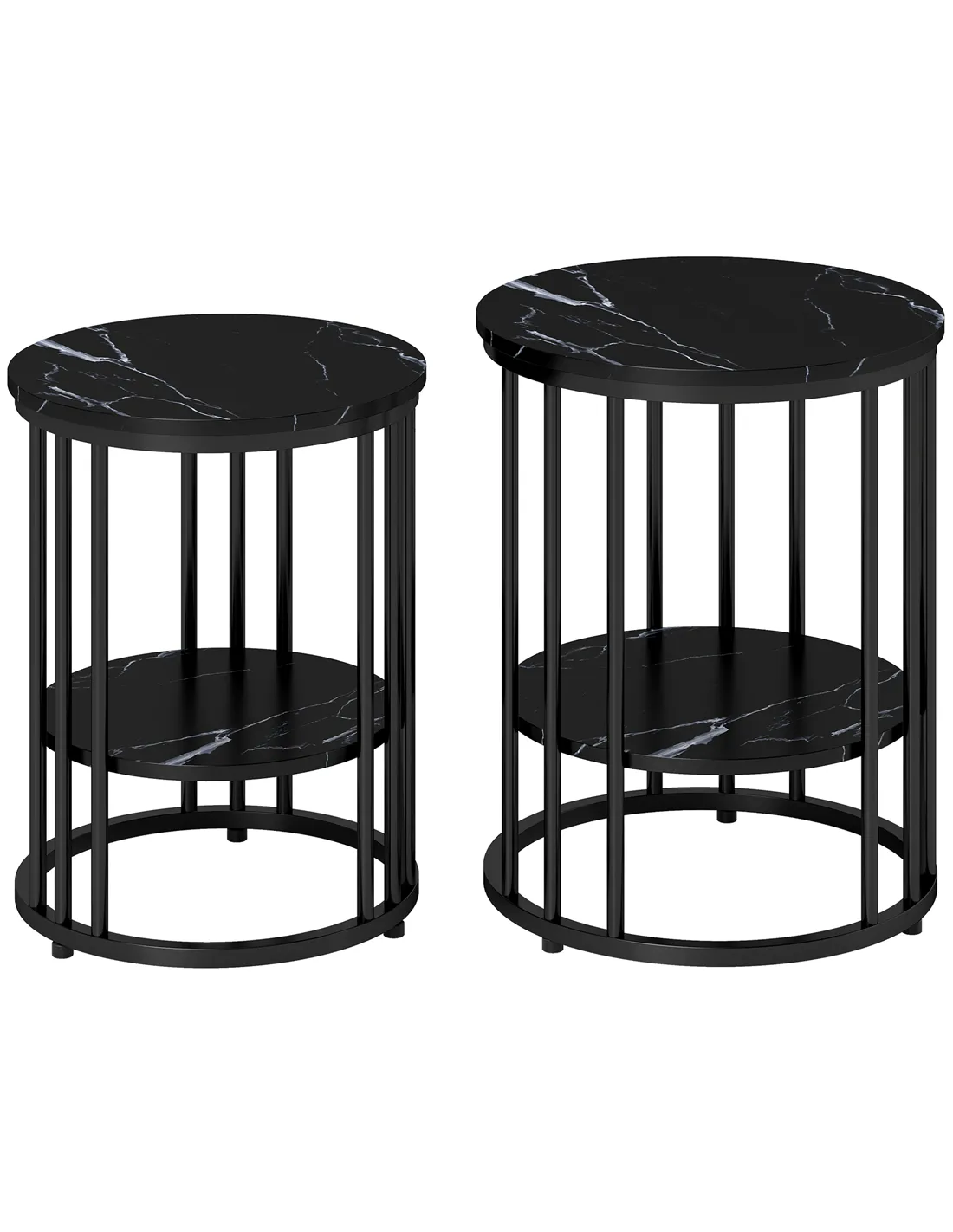 HOMCOM Set of Two Marble-Effect Coffee Tables - Black