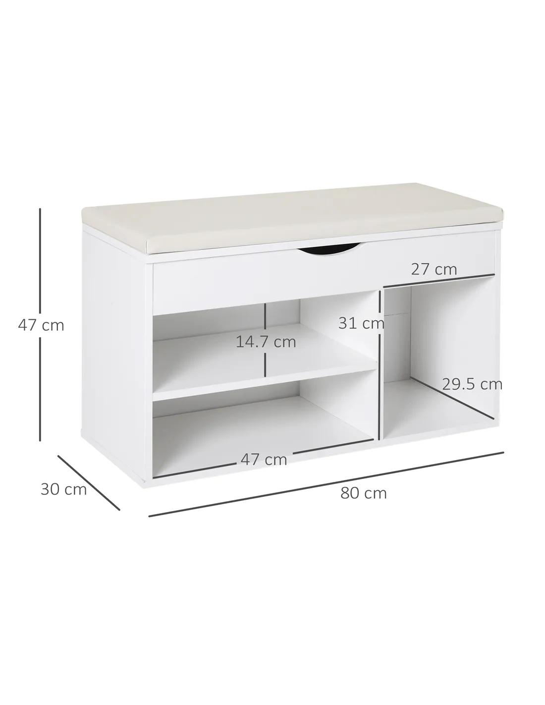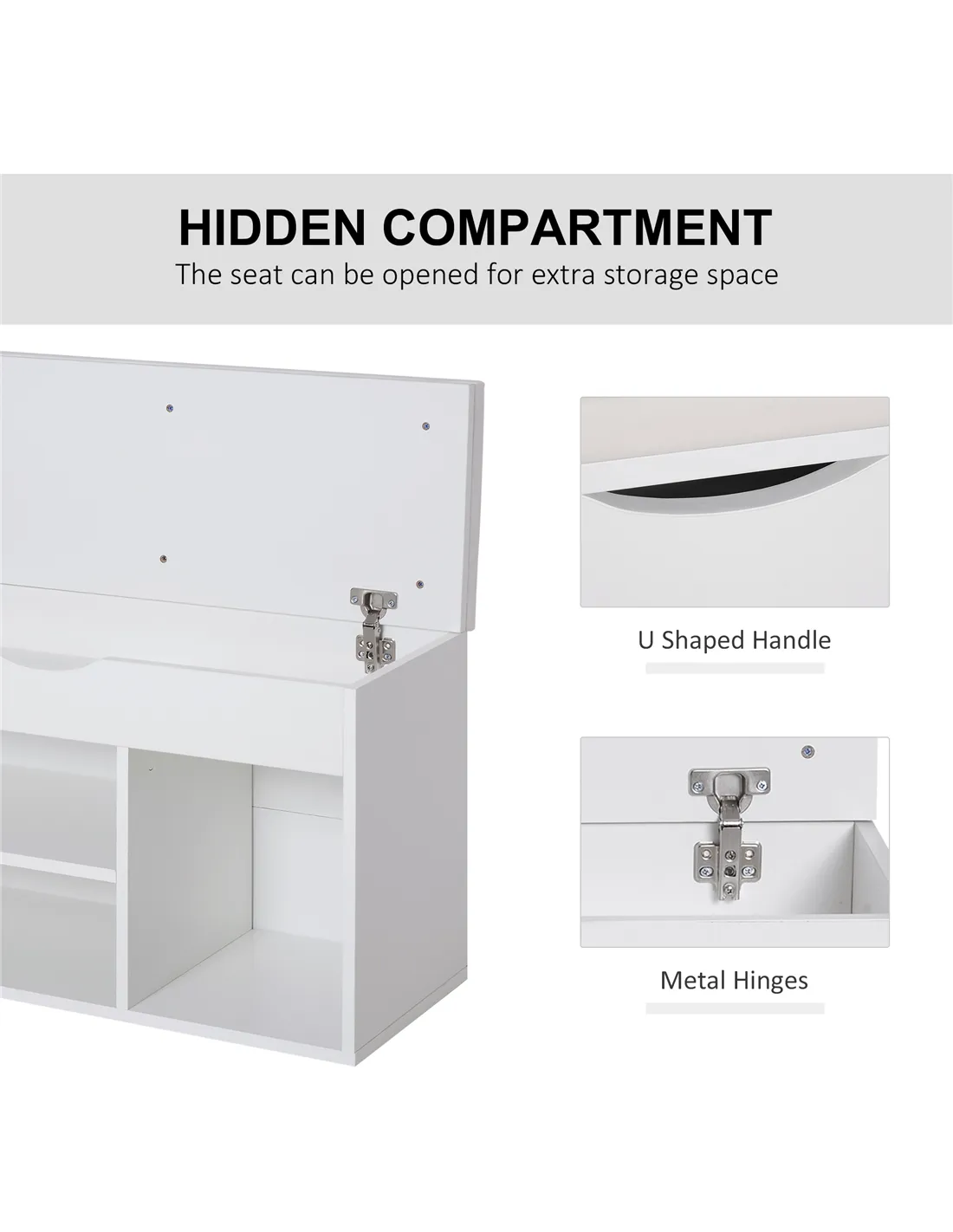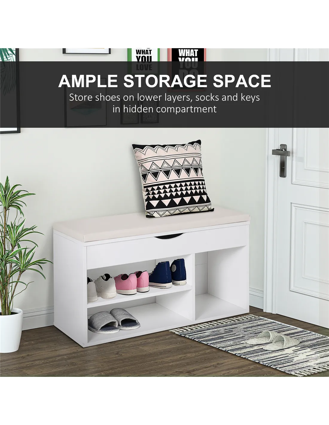 HOMCOM Wooden Shoes Cabinet Bench Hidden Storage Padded Seat Organiser Footwear Rack Hallway White 80 x 30 x 47 cm