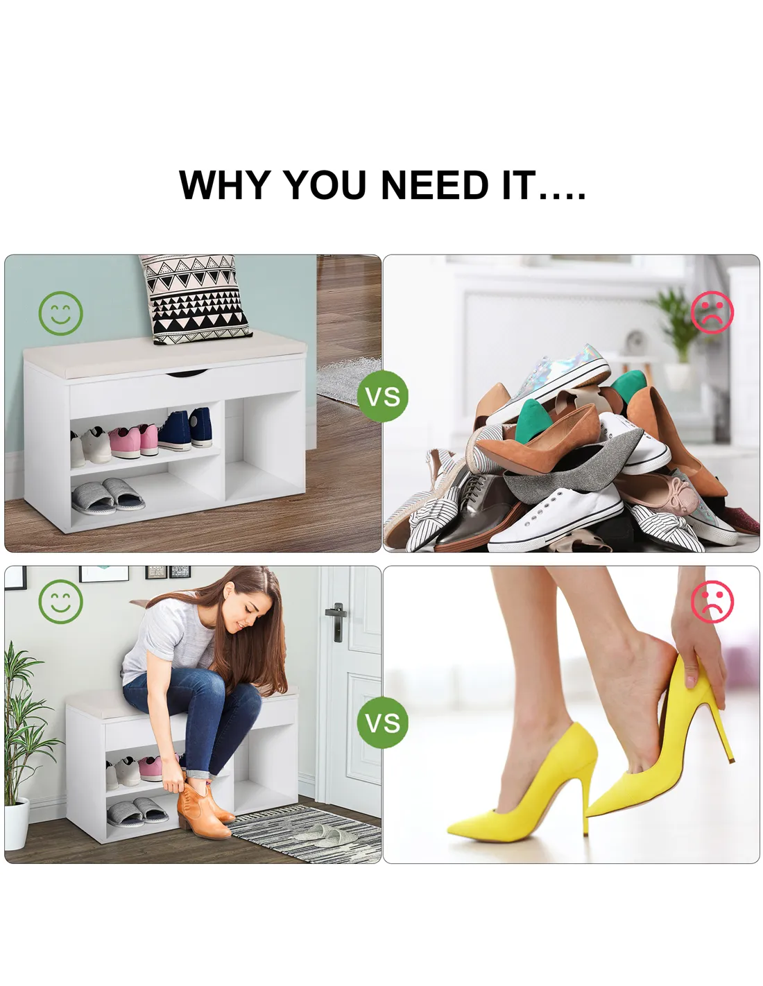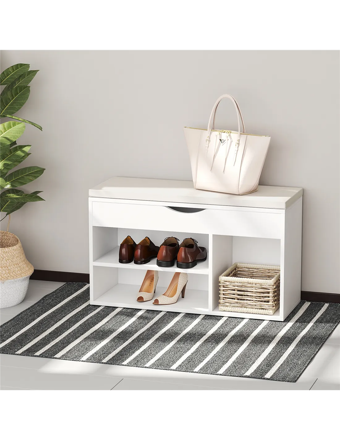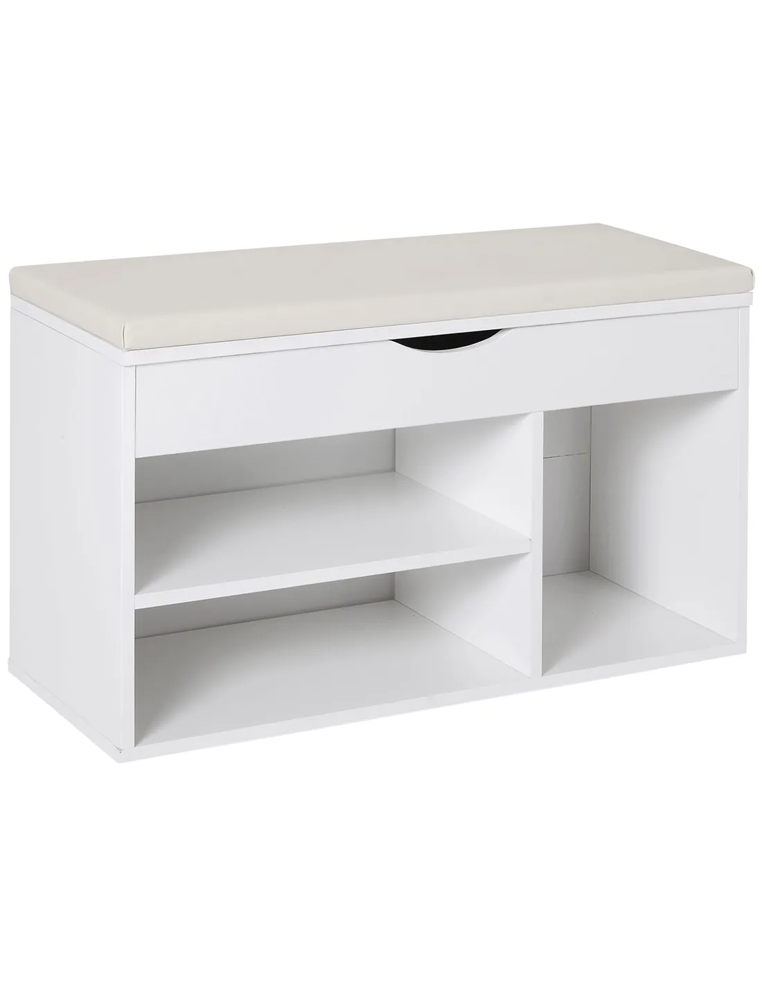 HOMCOM Wooden Shoes Cabinet Bench Hidden Storage Padded Seat Organiser Footwear Rack Hallway White 80 x 30 x 47 cm