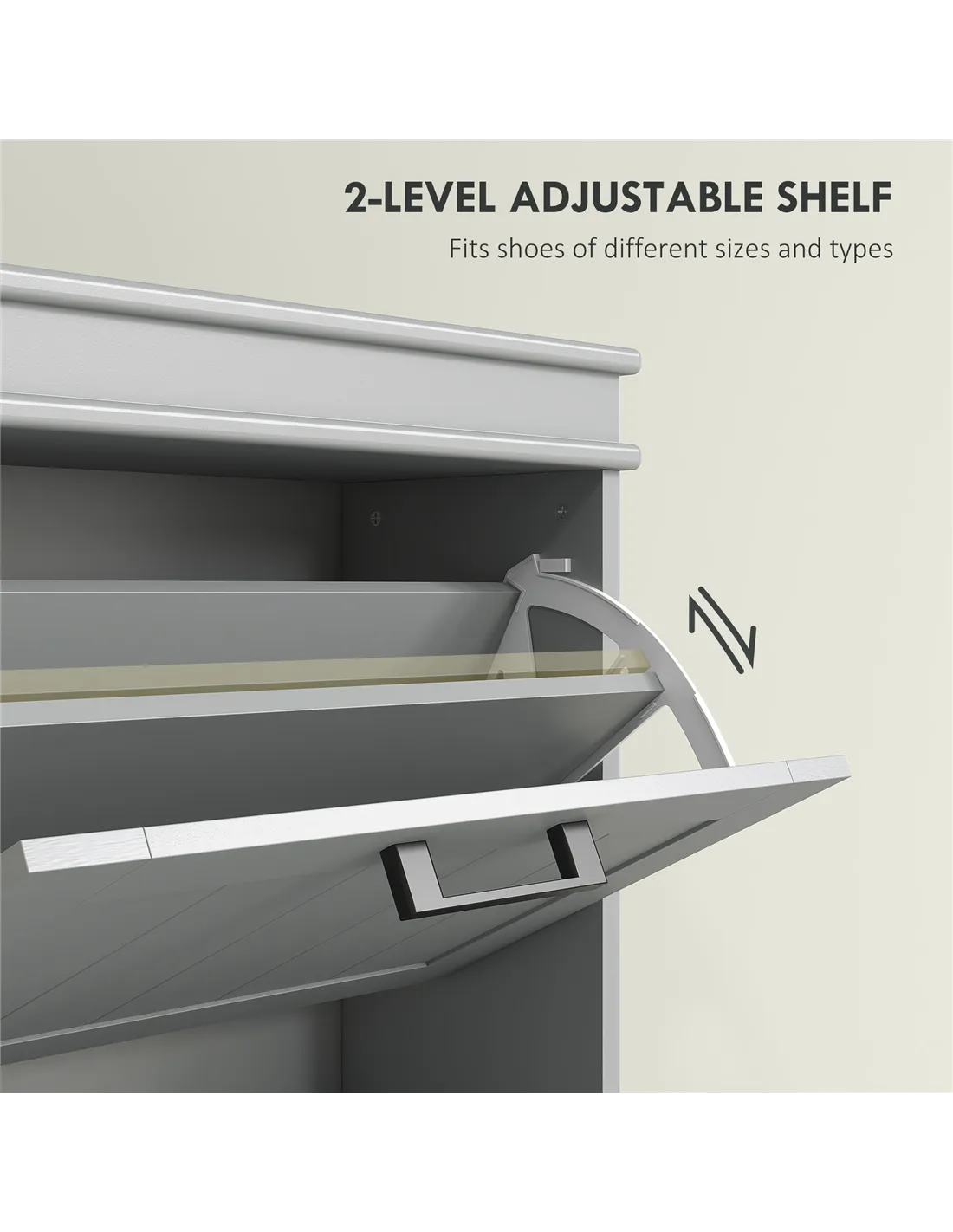 - Two-level adjustable inner shelves for different footwear