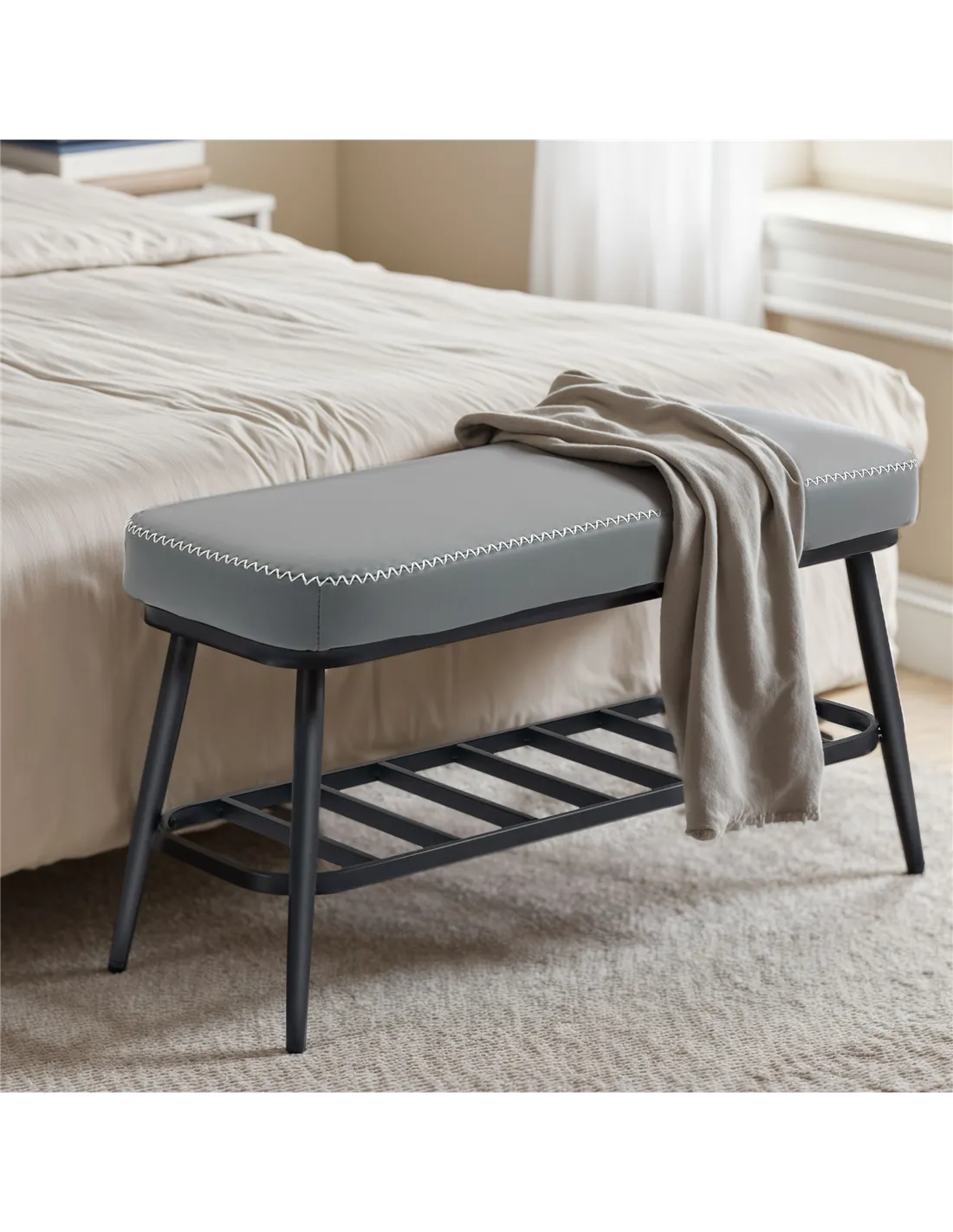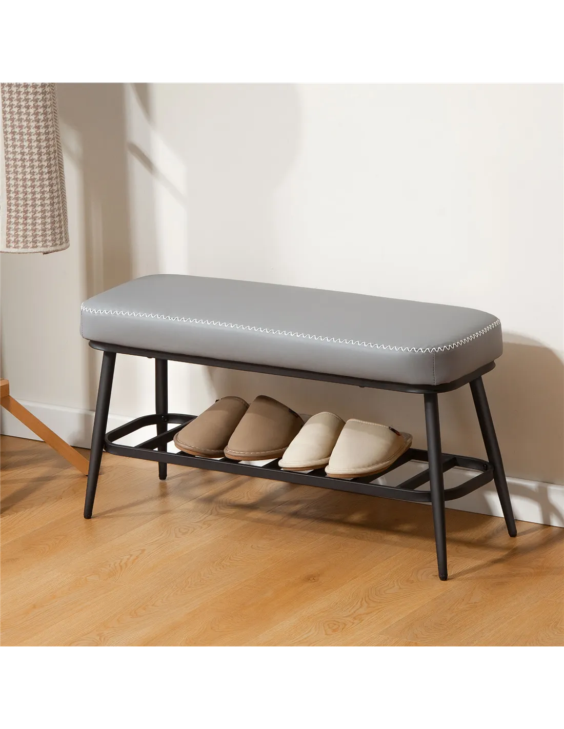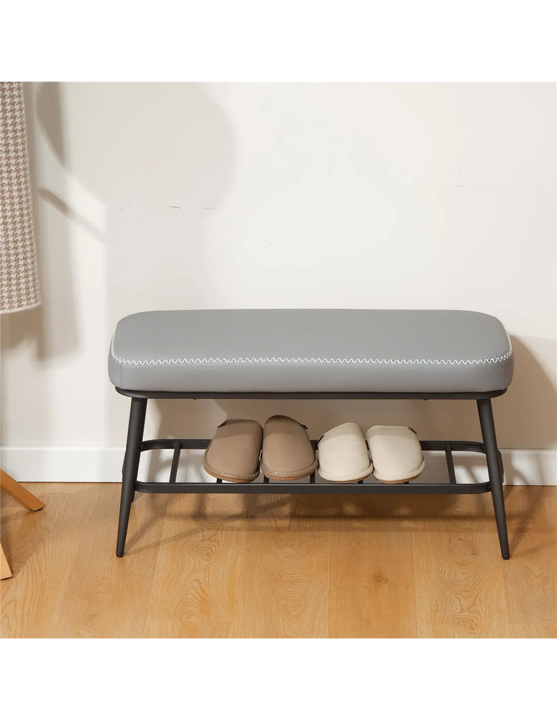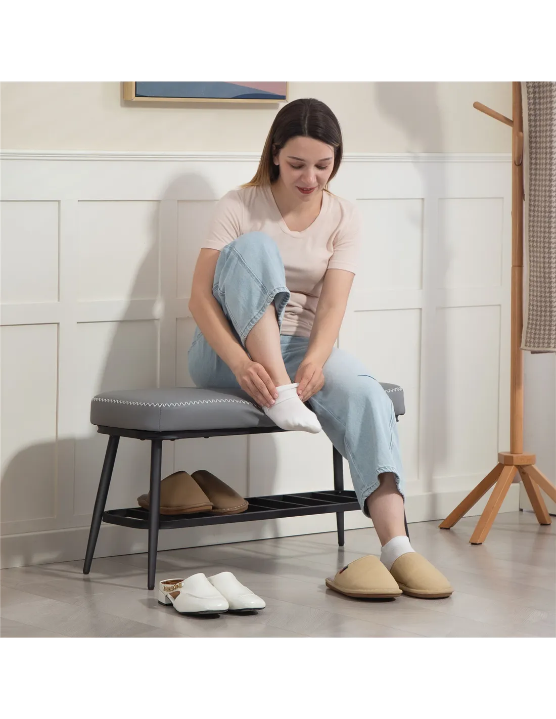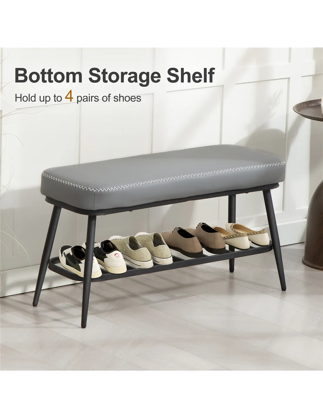 HOMCOM PU Leather Shoe Storage Bench - Grey