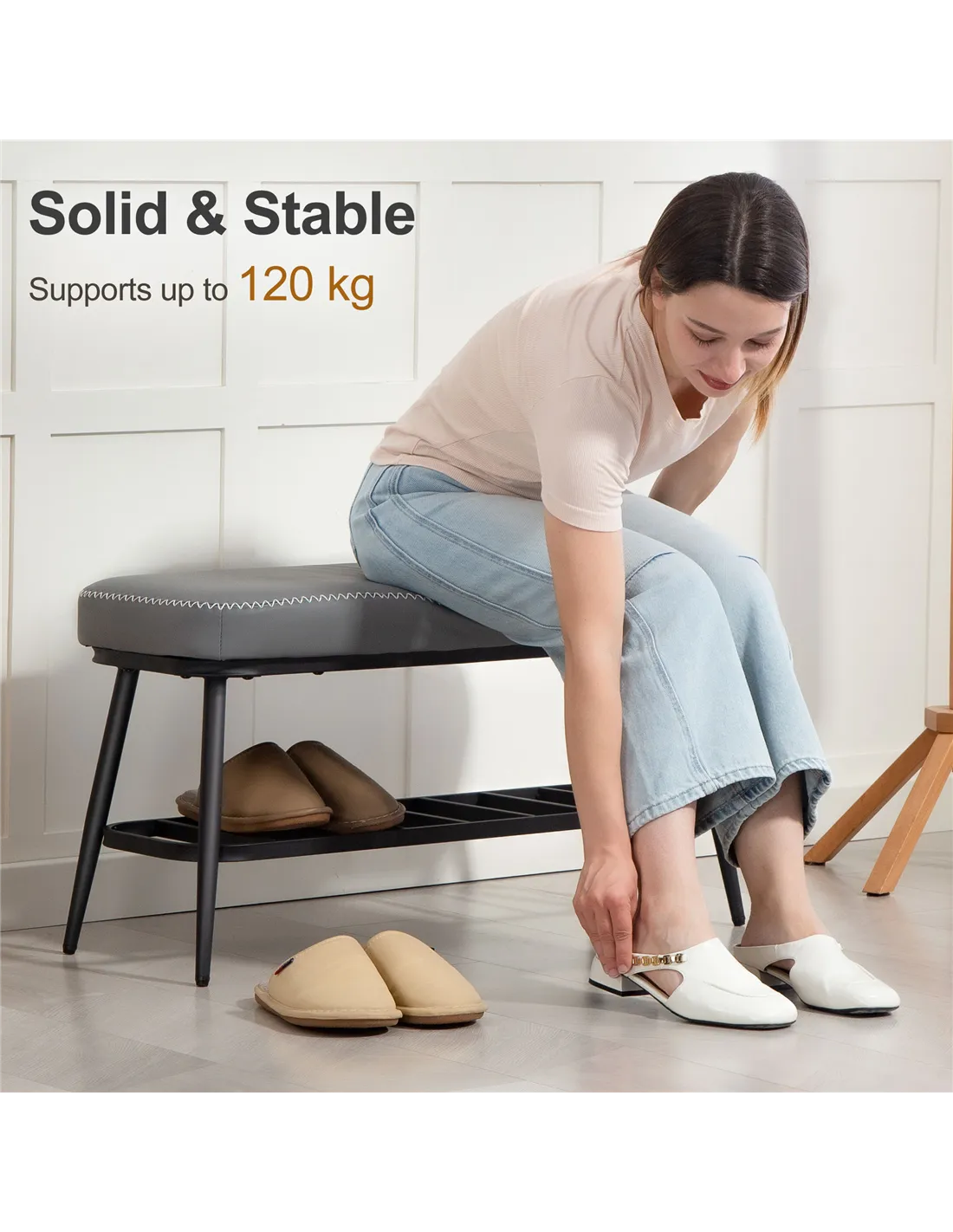 - A: The HOMCOM PU Leather Shoe Storage Bench has a robust metal frame, supporting a maximum weight of 120 kg for stable and reliable use.