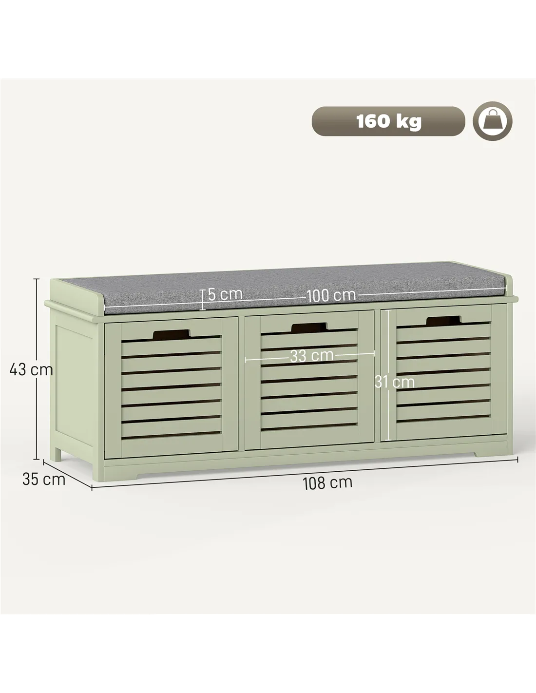 - A: The shoe bench supports a maximum load of 160 kg.