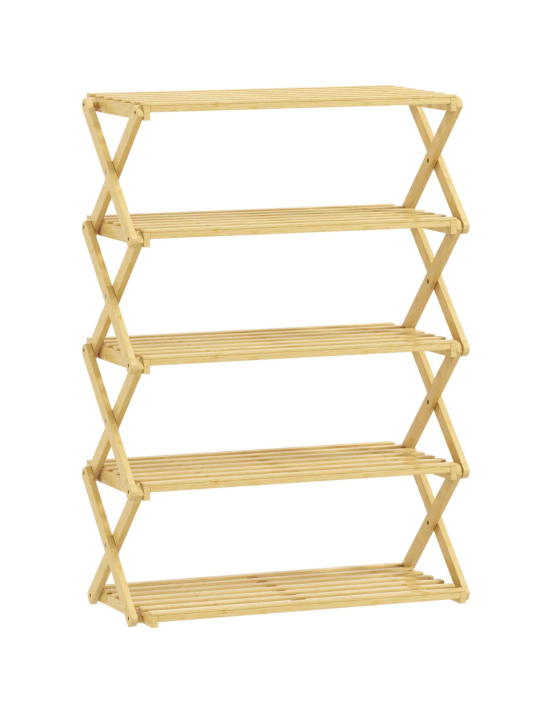 HOMCOM Five-Tier Folding Bamboo Shoe Rack - Natural Finish