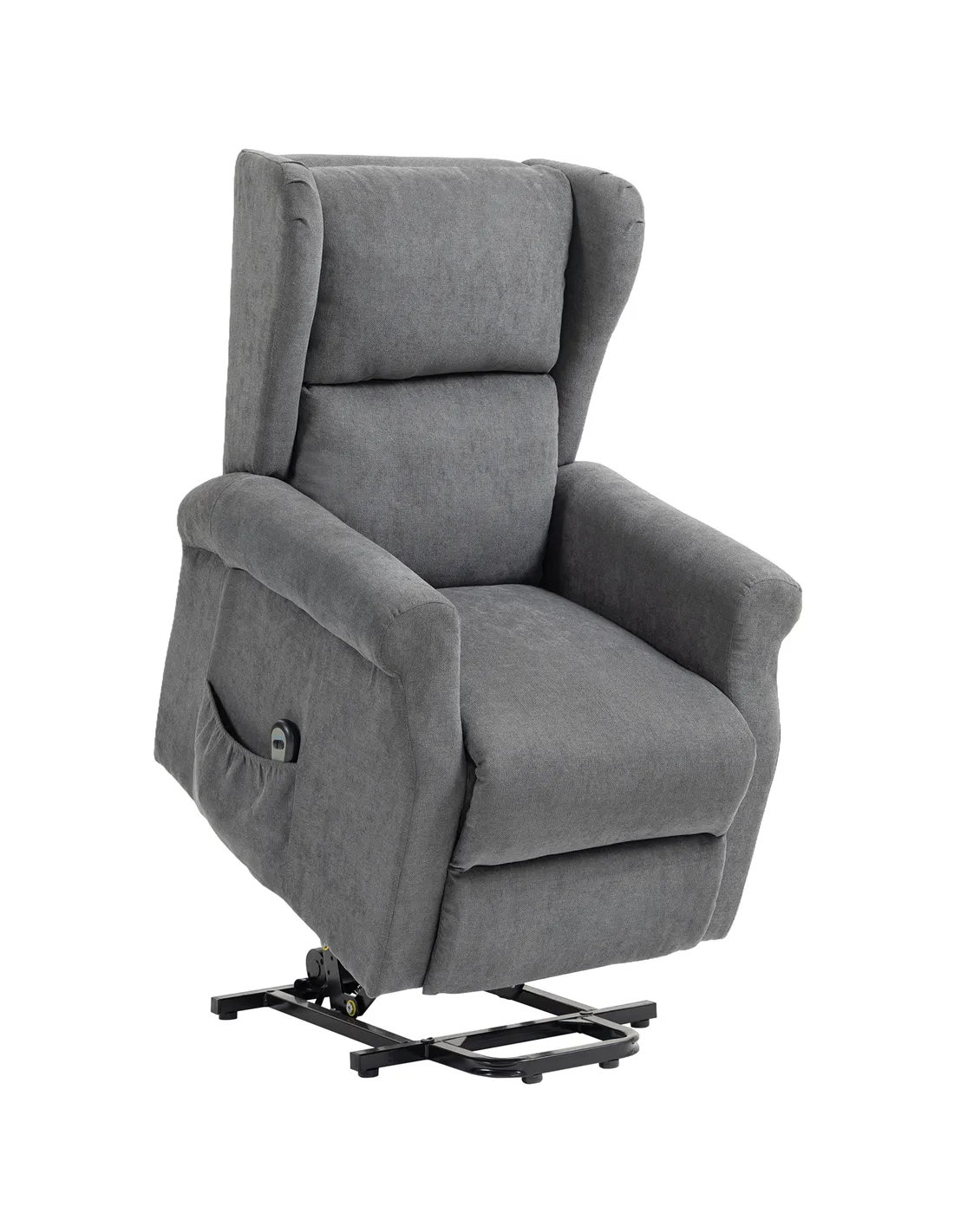 The HOMCOM Power Lift Recliner Armchair, available at FastDaddy, offers practical independence for elderly users. This electric lift chair assists in daily living, providing a secure solution for your living room. A robust steel frame ensures stable support for individuals weighing up to 200 kg. Experience consistent comfort with generous padding and smooth, breathable linen-look upholstery. You control the 135° reclining back and extended footrest with a simple remote, finding your ideal position. Transition effortlessly from sitting to standing with the gentle 45° lift function. Keep your remote and personal items accessible in the side pockets. Presented in a charcoal grey finish, this fabric riser and reclining chair blends into any home décor, delivering both functionality and relaxation.