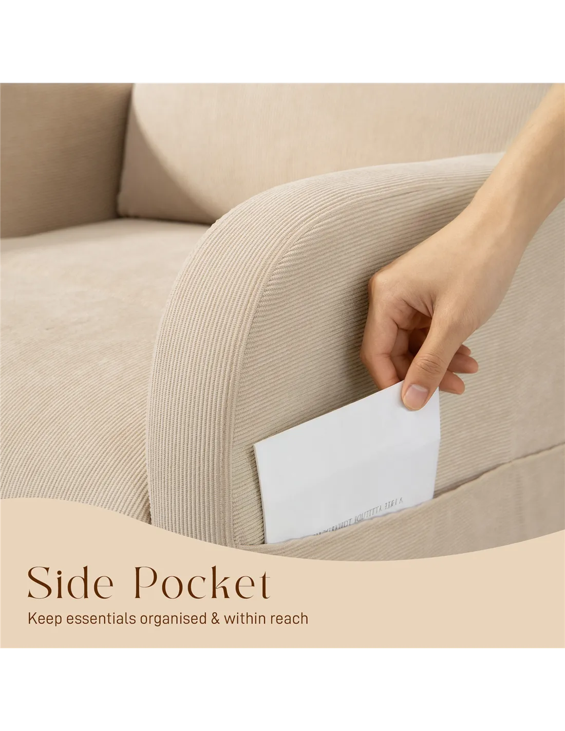- Two side pockets for handy storage. Keep magazines and remotes next to you