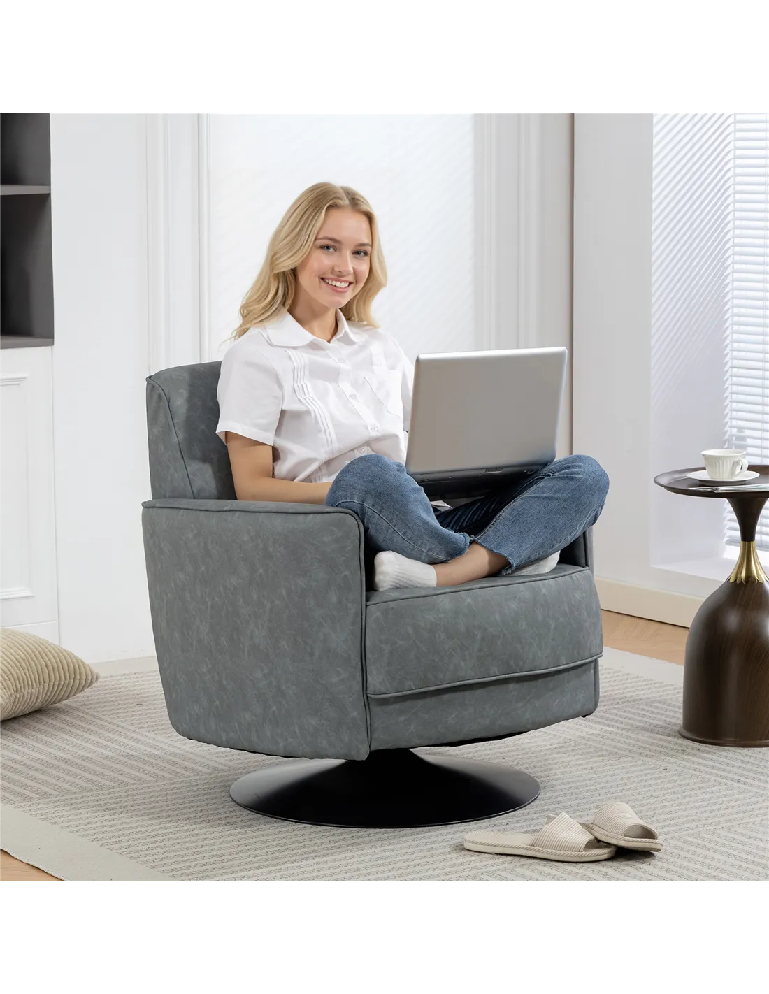 - Smooth 360° swivel lets you chat, reach, or relax with ease