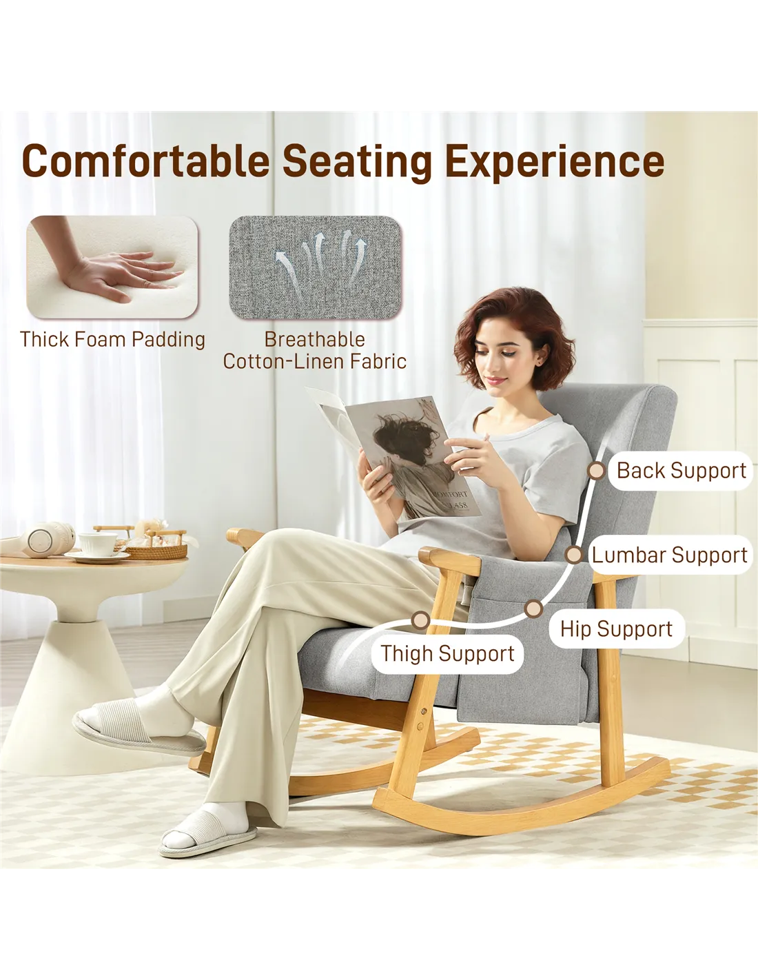 HOMCOM Wood Frame Rocking Accent Chair - Light Grey