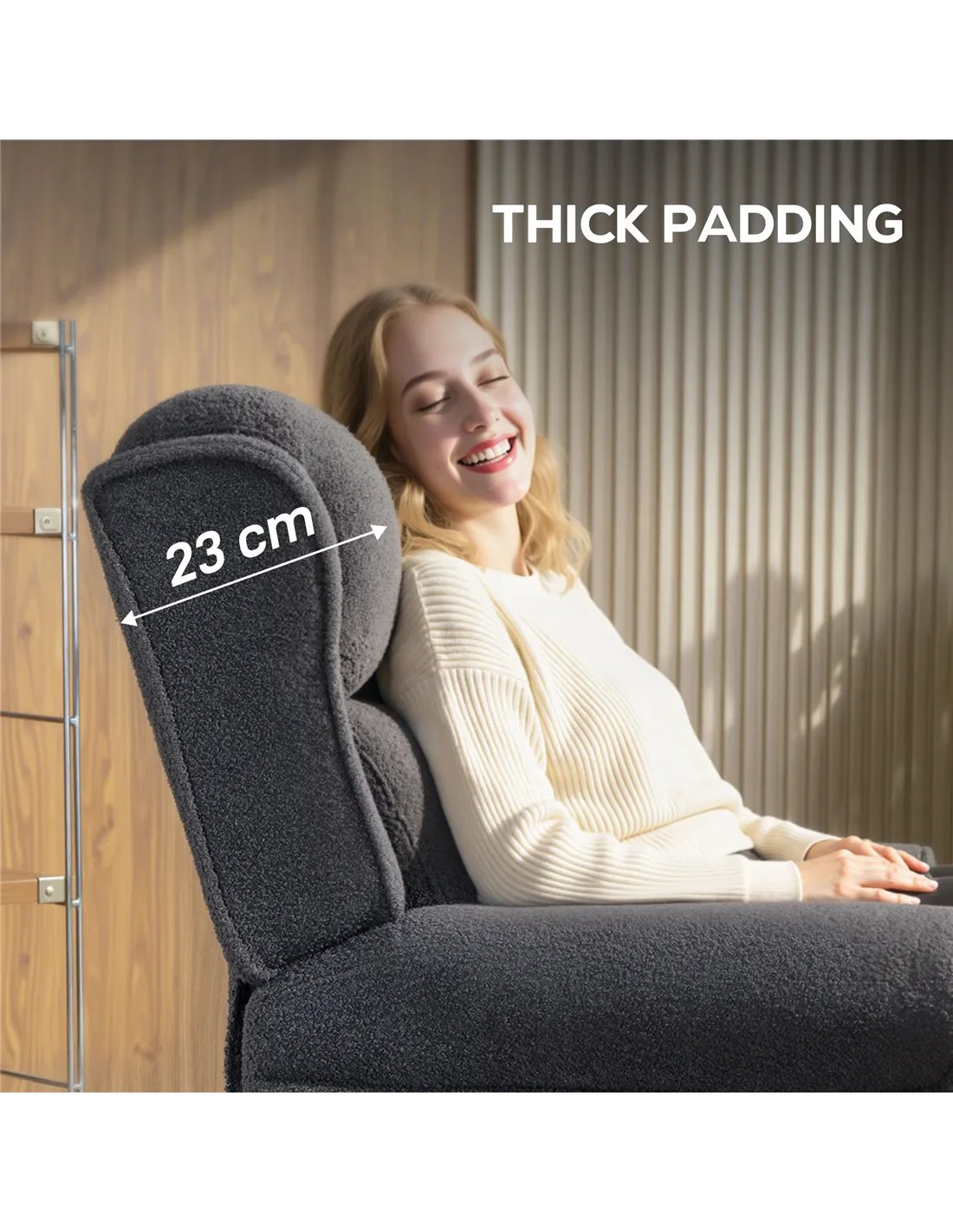 Enhance your living space with the HOMCOM 132° Recliner Armchair, featuring an Extended Footrest in Dark Grey. Designed specifically for individuals up to 6 feet or 185 cm tall, this armchair provides exceptional comfort and support. Enjoy personalised relaxation with its 132° manual push-back reclining function, allowing you to effortlessly find your ideal position. The deep, high-resilience foam padding combined with pocket springs ensures superior cushioning and maintains the chair's shape over time. It comes upholstered in a soft, inviting teddy fleece fabric, adding a layer of warmth and cosiness to your home. Built with a sturdy steel frame, this recliner safely supports up to 120 kg. This durable and comfortable armchair is a practical addition for any UK resident seeking relaxation.