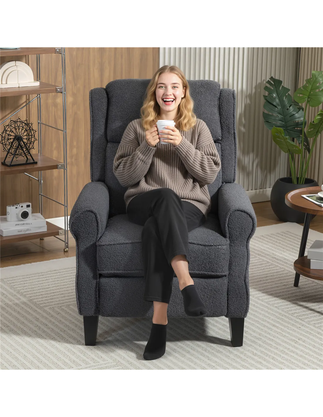 - A: The armchair features a 132° manual push-back reclining angle. You simply push the back to achieve your desired position.