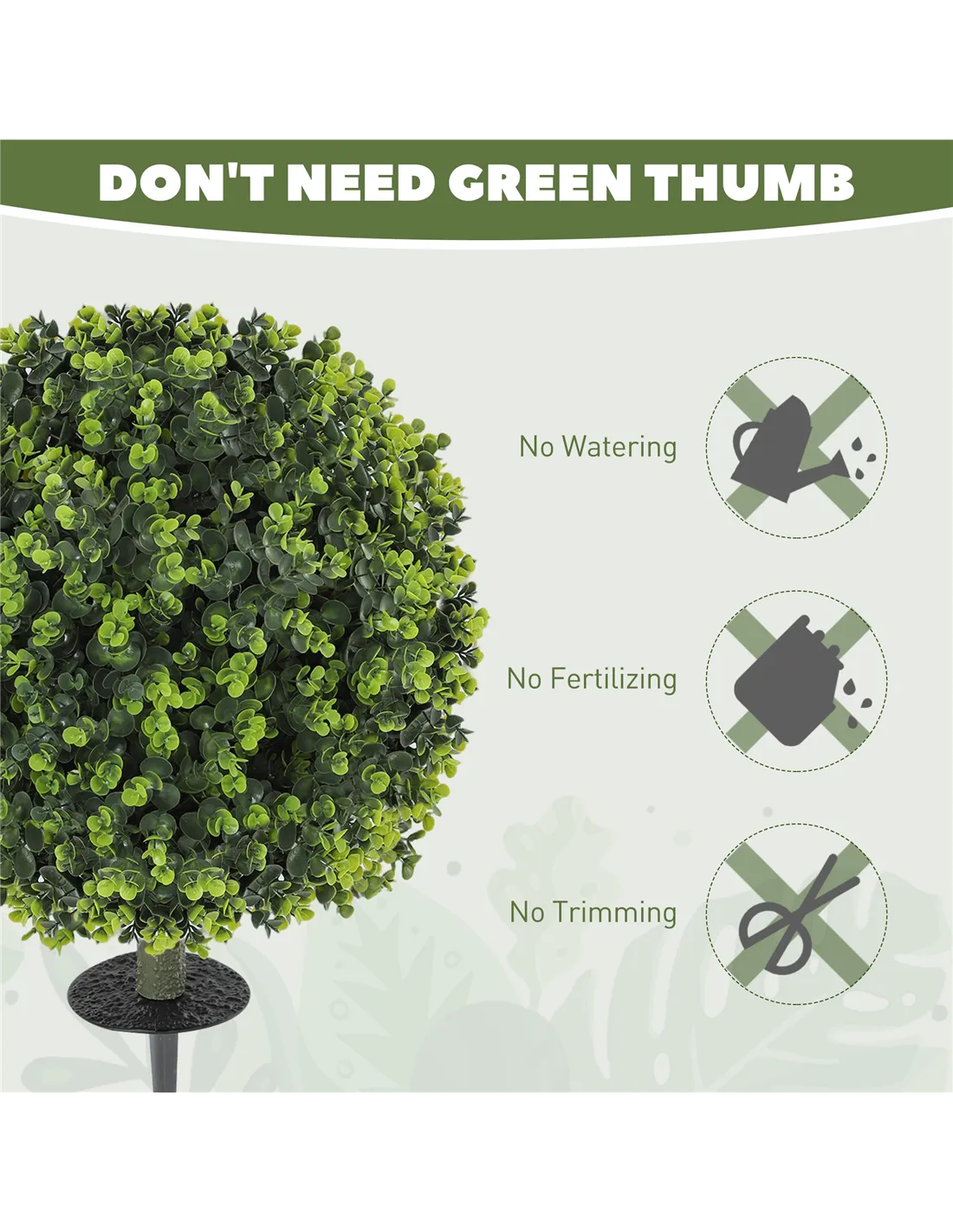 - A: These HOMCOM artificial boxwood topiary balls are UV-resistant and suitable for indoor or outdoor use. They maintain their colour and appearance in gardens, porches, or balconies.