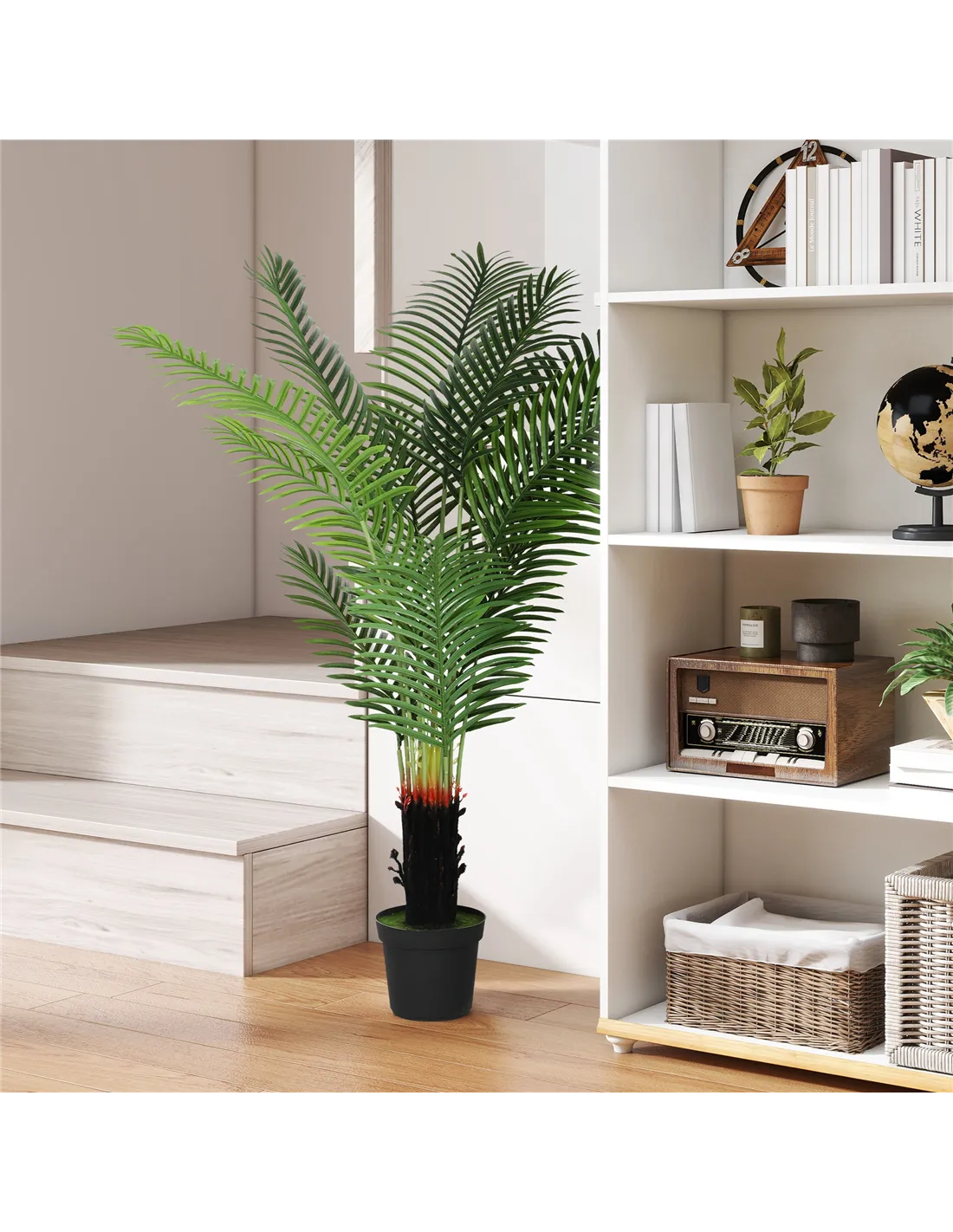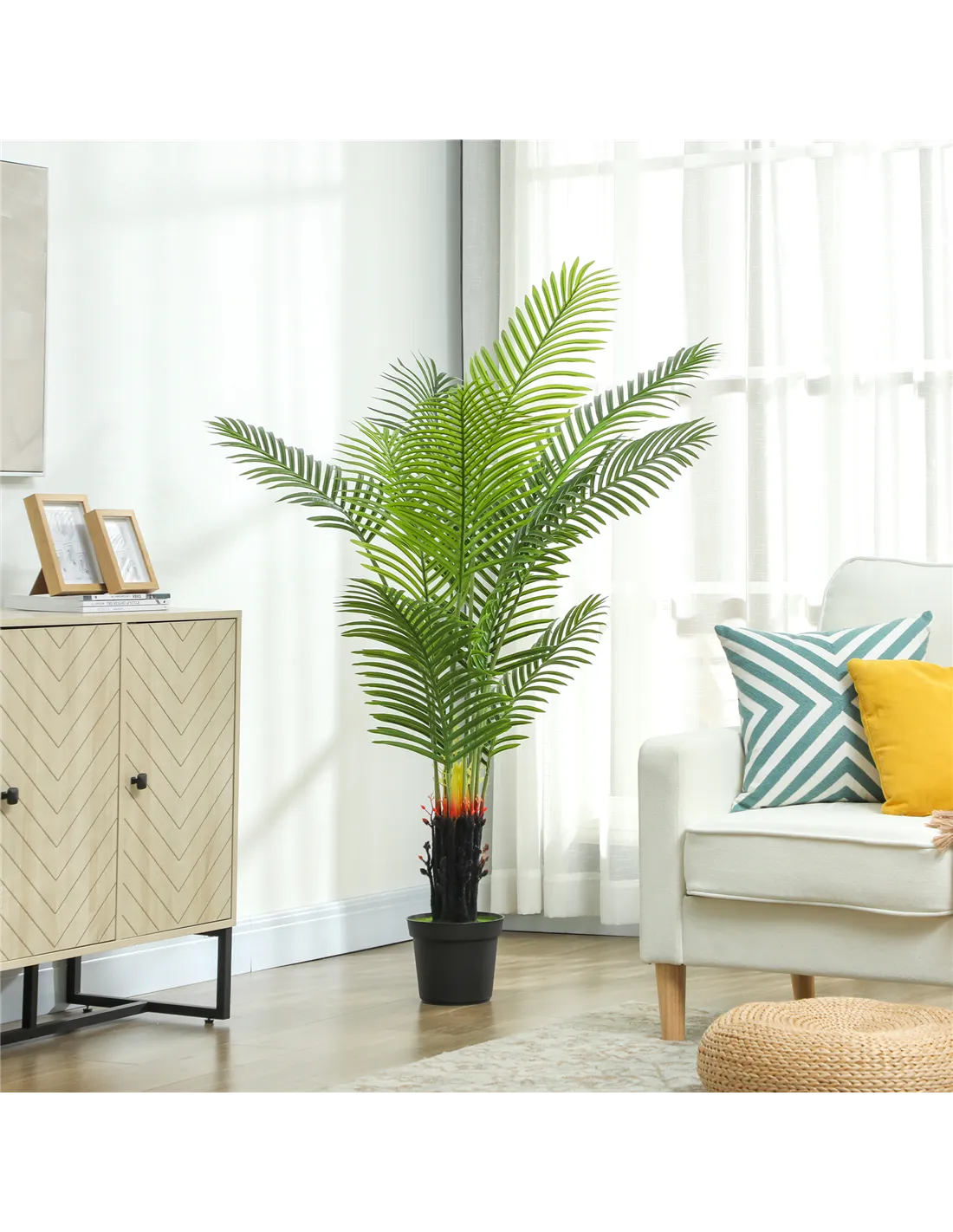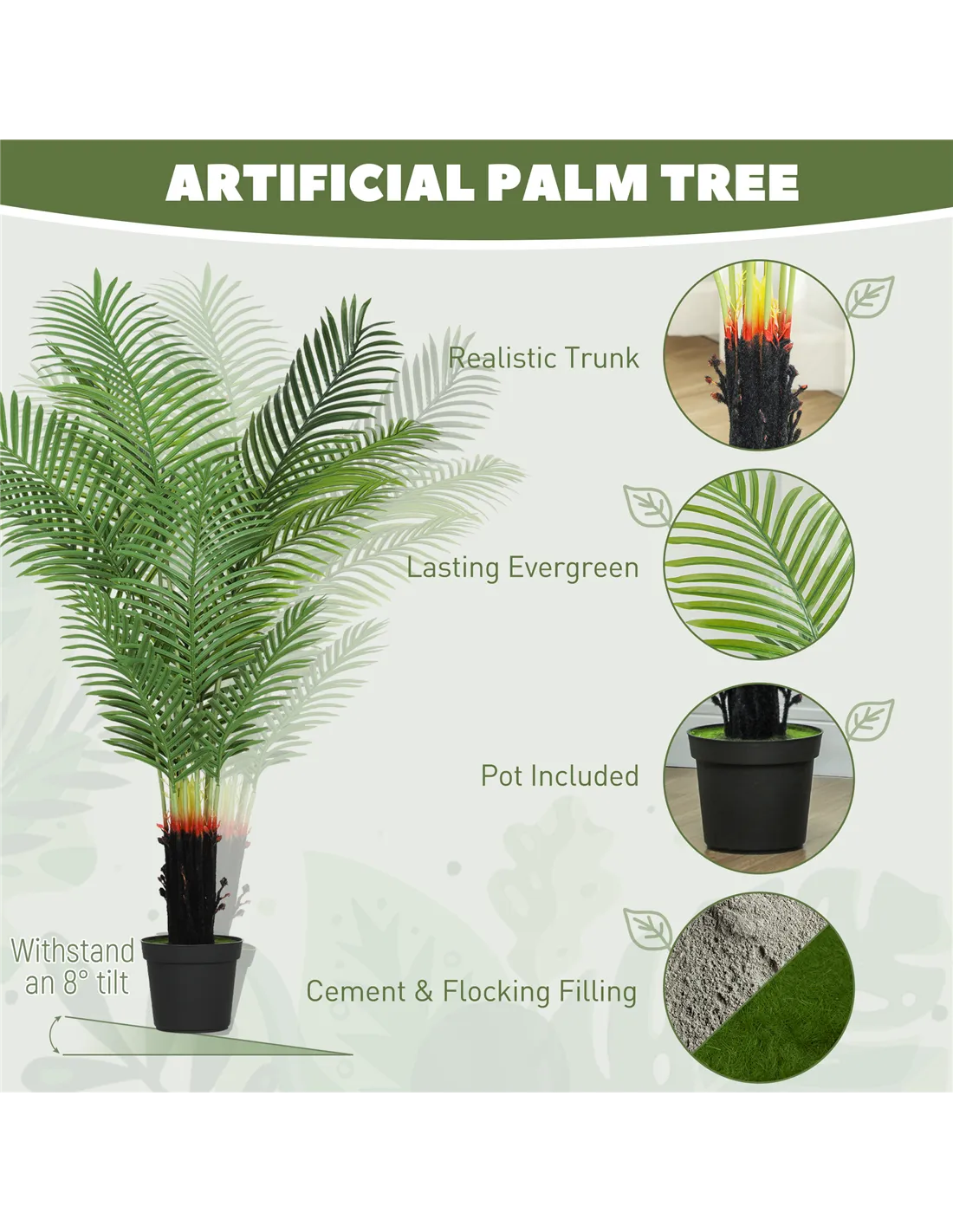 Introduce enduring tropical elegance to your UK home or office with the HOMCOM 150cm Artificial Areca Palm Tree. This decorative artificial plant delivers a lush, realistic green aesthetic, featuring 12 lifelike PE leaves and a detailed flocked trunk. Designed for hassle-free display, this fake plant requires zero watering or trimming, providing year-round vibrancy without maintenance. The included plastic pot contains flocked soil and features a weighted base, ensuring exceptional stability. It successfully passes an 8° tilt test, guaranteeing your Areca palm remains upright in any living room, entryway, or home office setting. Experience straightforward assembly and transform your interior decor effortlessly with this authentic-looking, durable artificial palm.