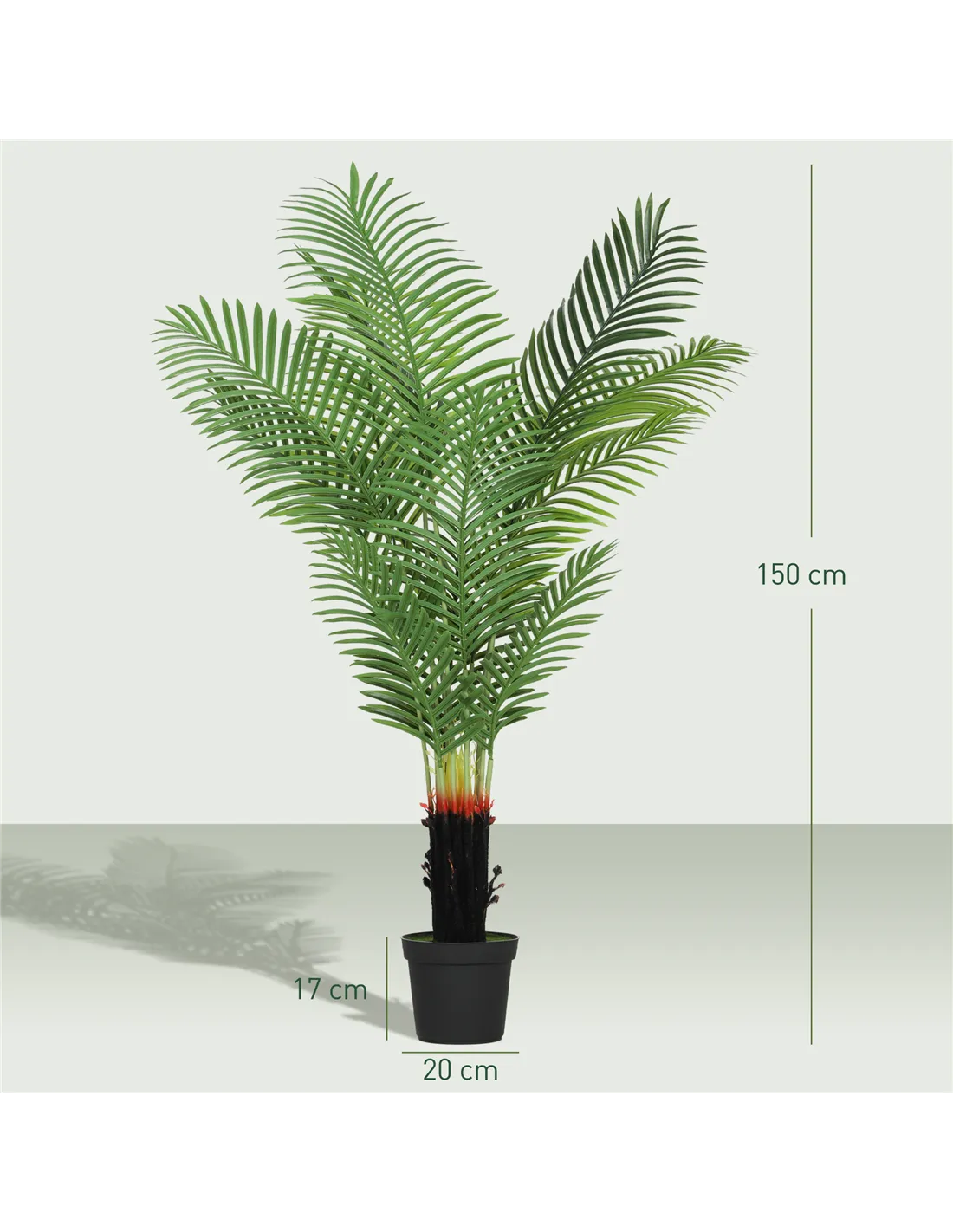 HOMCOM 150cm Artificial Areca Palm Tree with 12 PE Leaves, Decorative Artificial Plant with Plastic Pot and Flocked Soil, Fake Plant for Home Office Decor, Green