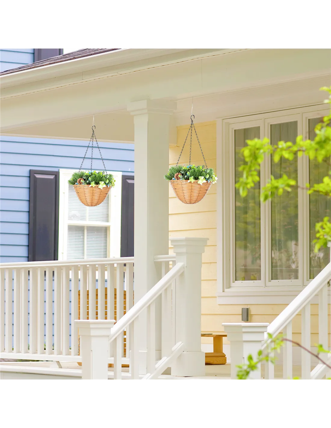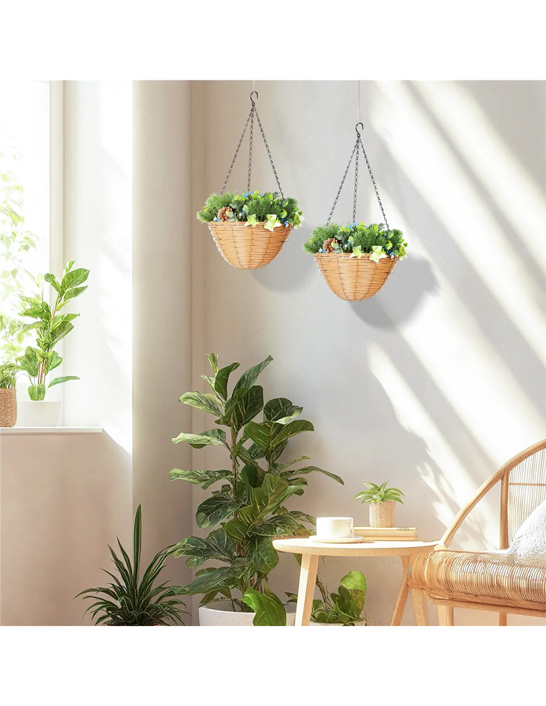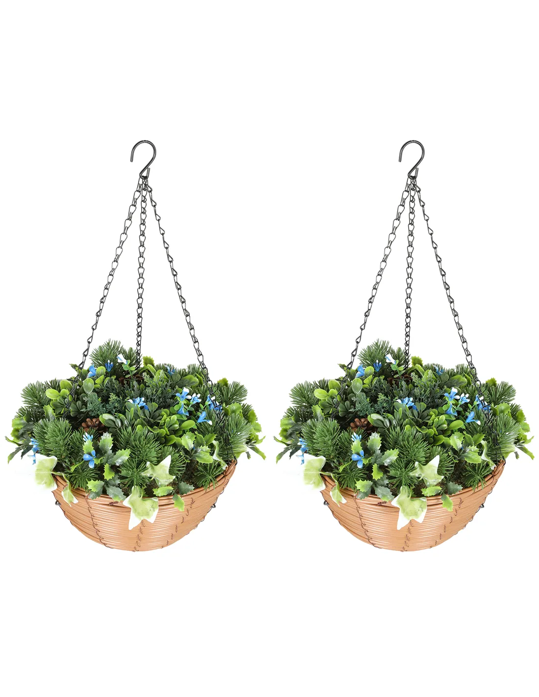 Transform your UK living or working space with the HOMCOM Pack of 2 Faux Plant Artificial Lisianthus Flowers. This realistic duo provides lasting natural beauty without the demand for watering or constant care. Each hanging planter features a lush display of green PE leaves, 18 vibrant blue Lisianthus flowers, and 3 distinct pinecones, all securely nestled within a stylish basket. These decorative faux plants offer a superior, maintenance-free solution for adding a fresh, inviting touch to any home or office interior across the UK. You gain versatile decorating options for various rooms, saving valuable time and energy daily. Experience the effortless elegance of lifelike botanical charm, ensuring your environment remains vibrant and consistently welcoming with minimal fuss. Enjoy a sophisticated aesthetic designed for your convenience and enduring appeal.