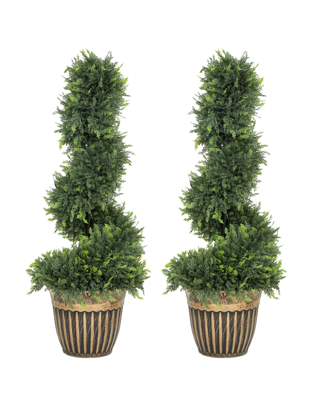 - A: Yes, these HOMCOM spiral boxwood cypress trees are designed for both home indoor and outdoor decor. Their durable construction makes them a versatile choice for your garden or patio.