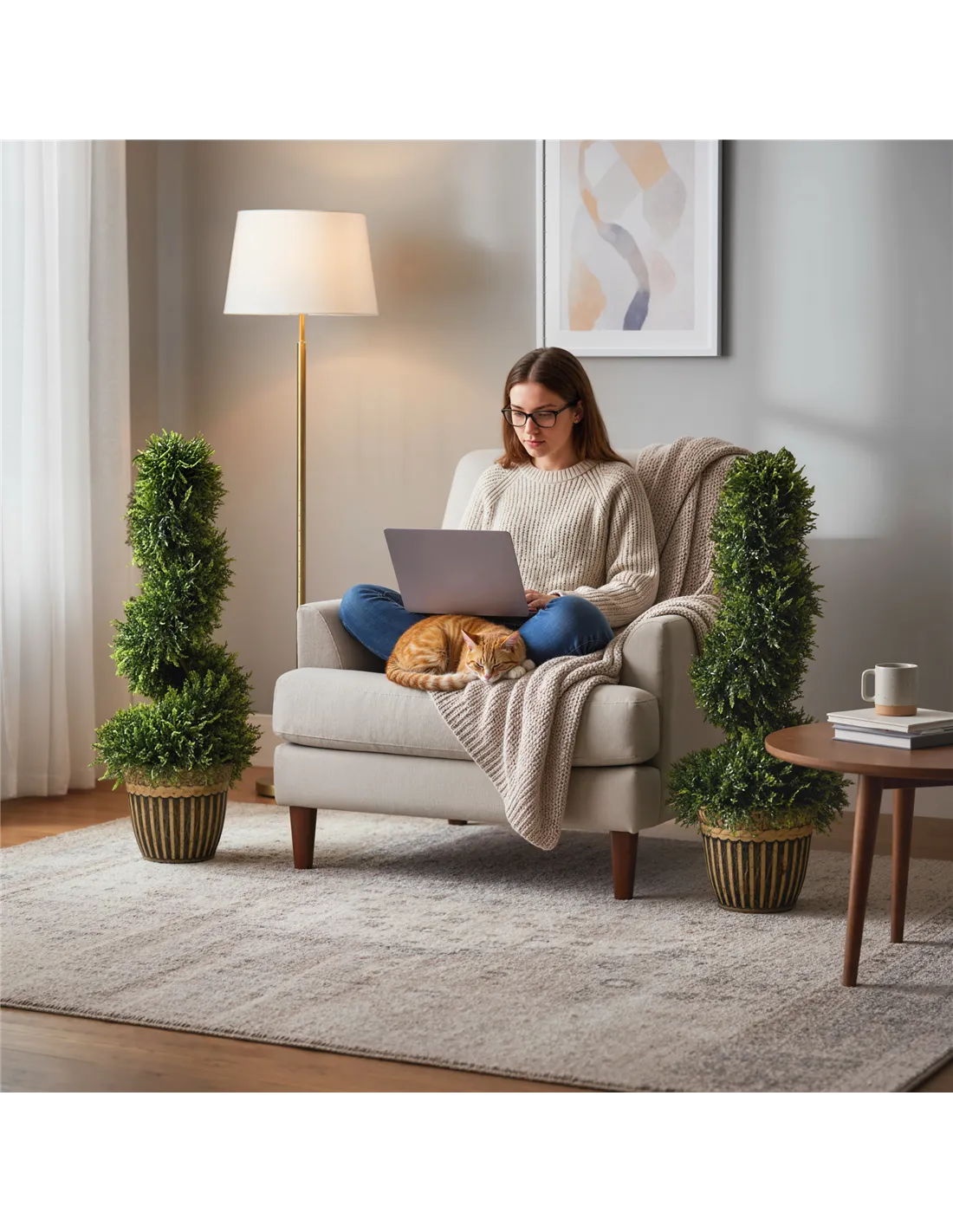 - A: These artificial plants offer year-round greenery and require no trimming or shaping, providing a consistently vibrant look. They are low maintenance and suitable for both indoor and outdoor use.