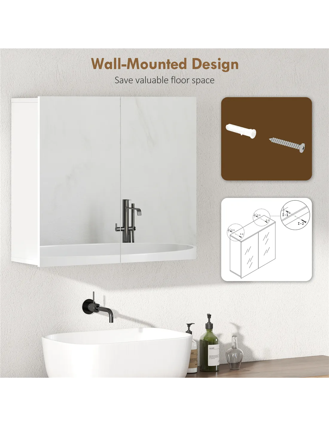 HOMCOM Double-Door Bathroom Mirror Cabinet - White