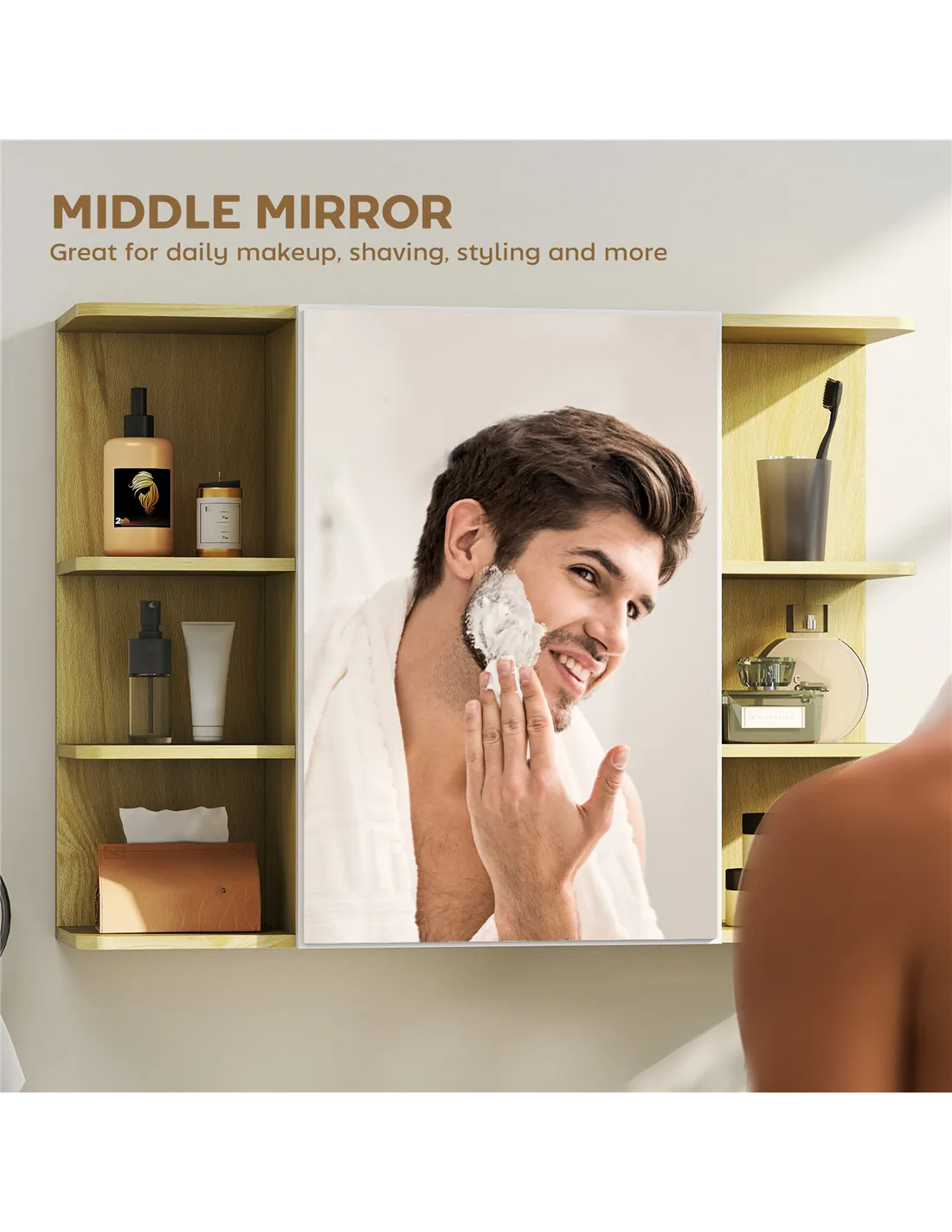 HOMCOM Bathroom Mirror Cabinet with Open Storage Shelves - Natural Wood Finish