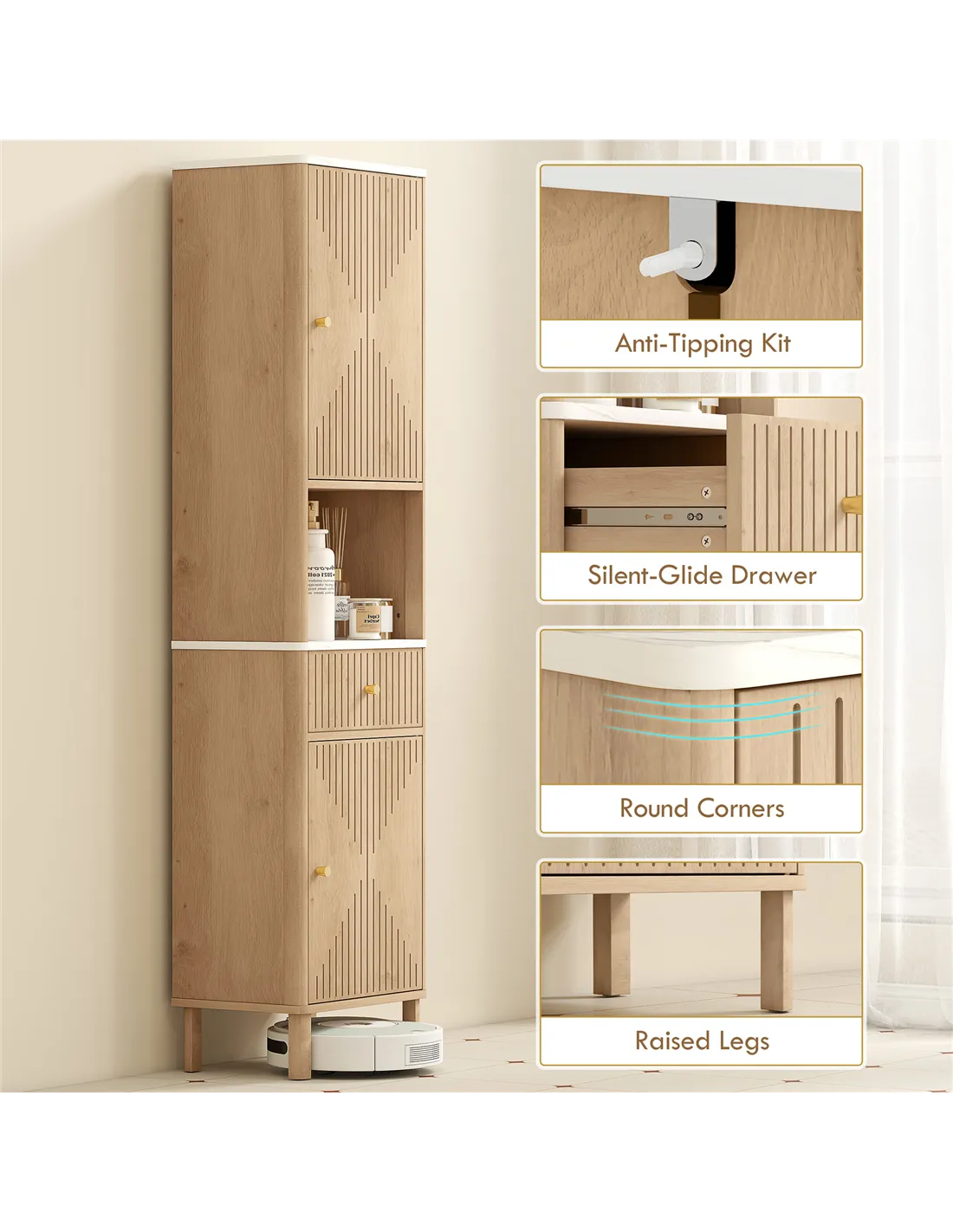 - A: An anti-tipping kit is supplied with the cabinet. This allows you to safely secure it to a wall for stability.