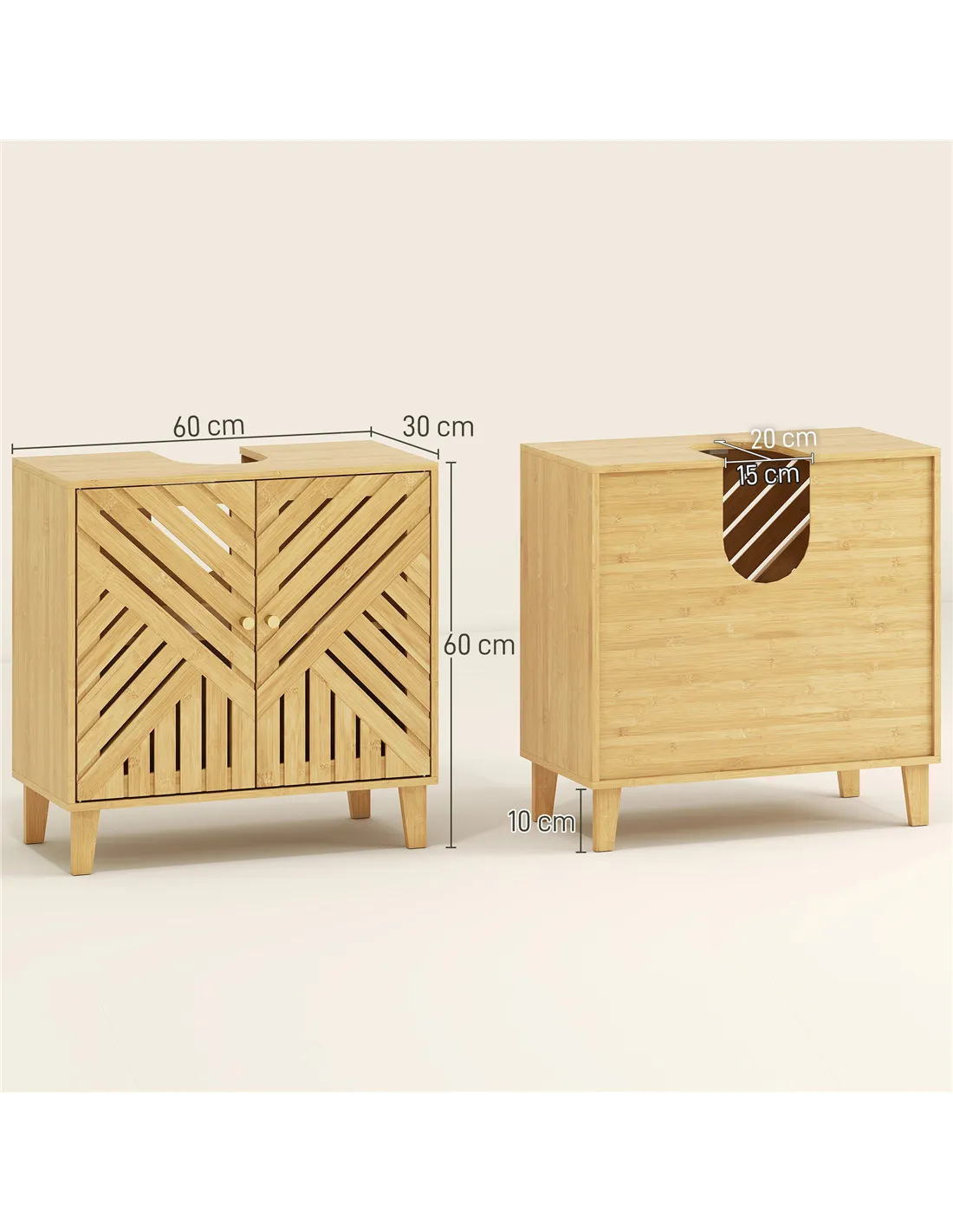 Upgrade your UK bathroom with the HOMCOM Bamboo Under Sink Cabinet. This natural bamboo unit fits seamlessly under wall-mounted basins without pedestals. Its thoughtful design transforms your space. The slatted bamboo construction adds warmth and a modern Nordic style to your bathroom. An open back simplifies plumbing installation, accommodating various wall-mounted sinks.