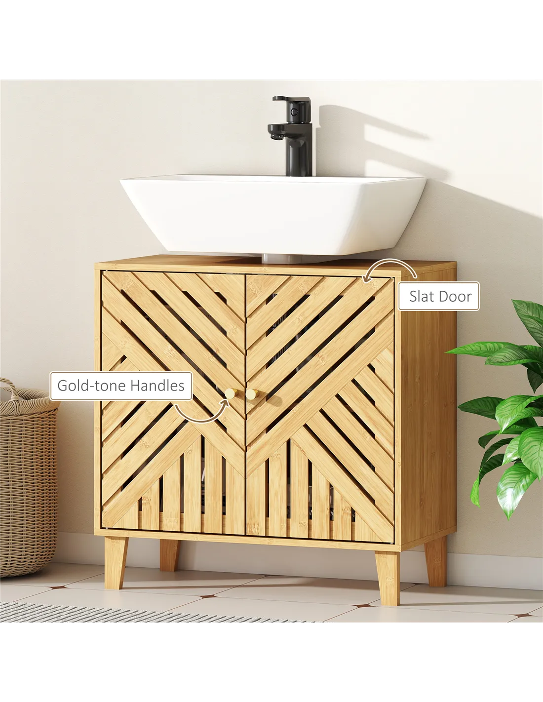 HOMCOM Bamboo Bathroom Under Sink Cabinet with Adjustable Shelf for Basin without Pedestal - Natural