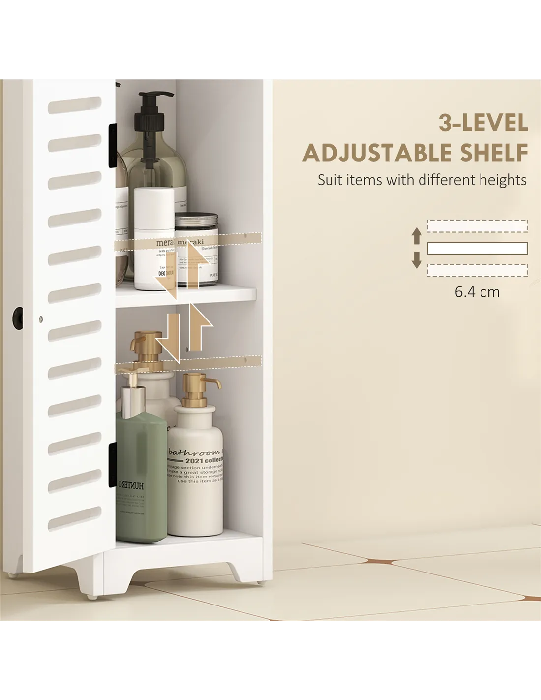 - Three-level adjustable shelf lets you customise space for taller items