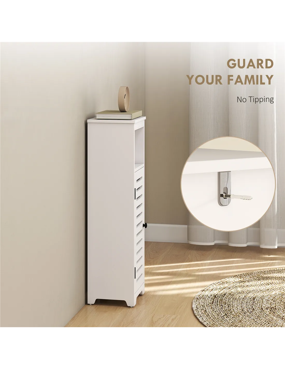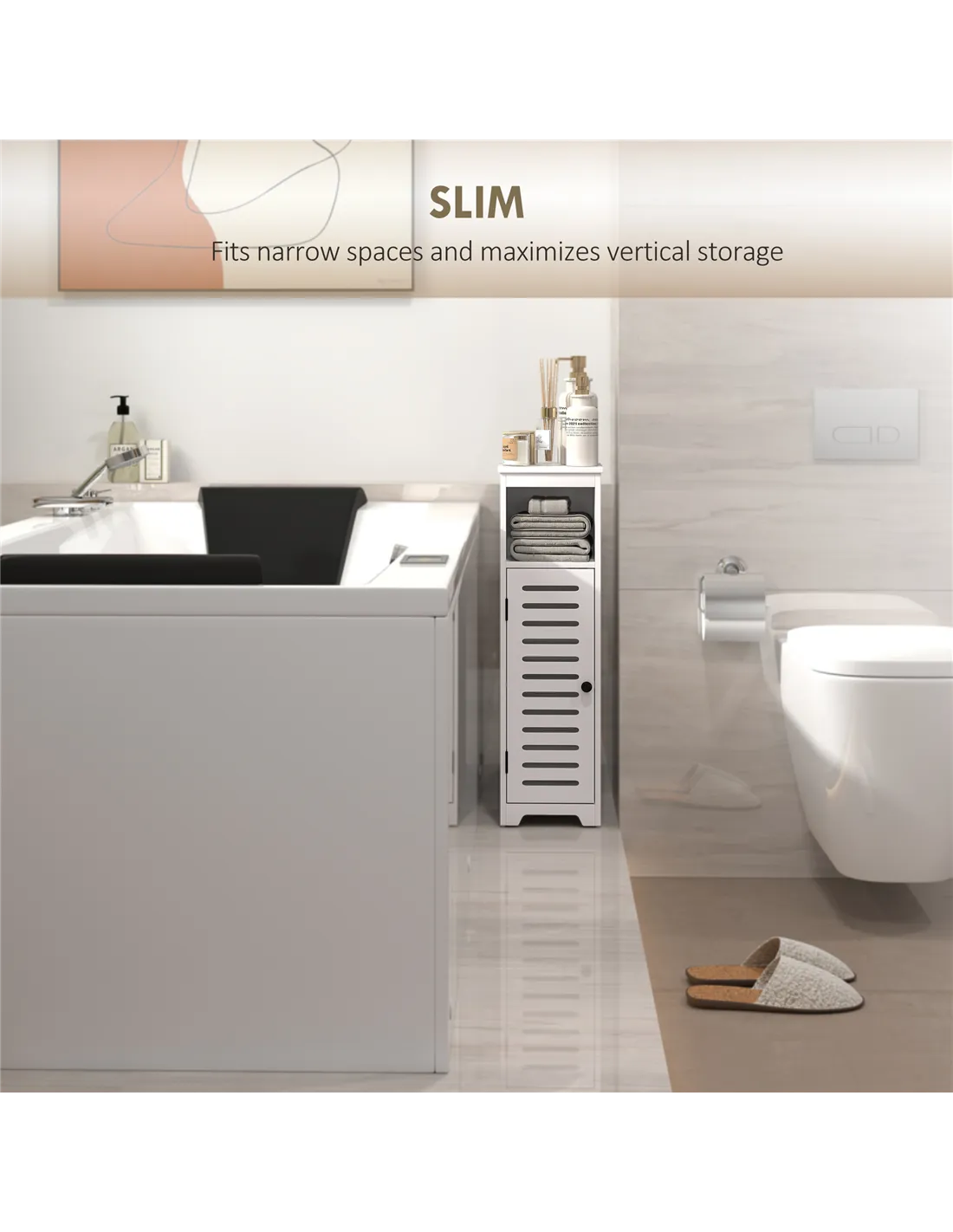 - Slim design fits small spaces, maximizing vertical storage