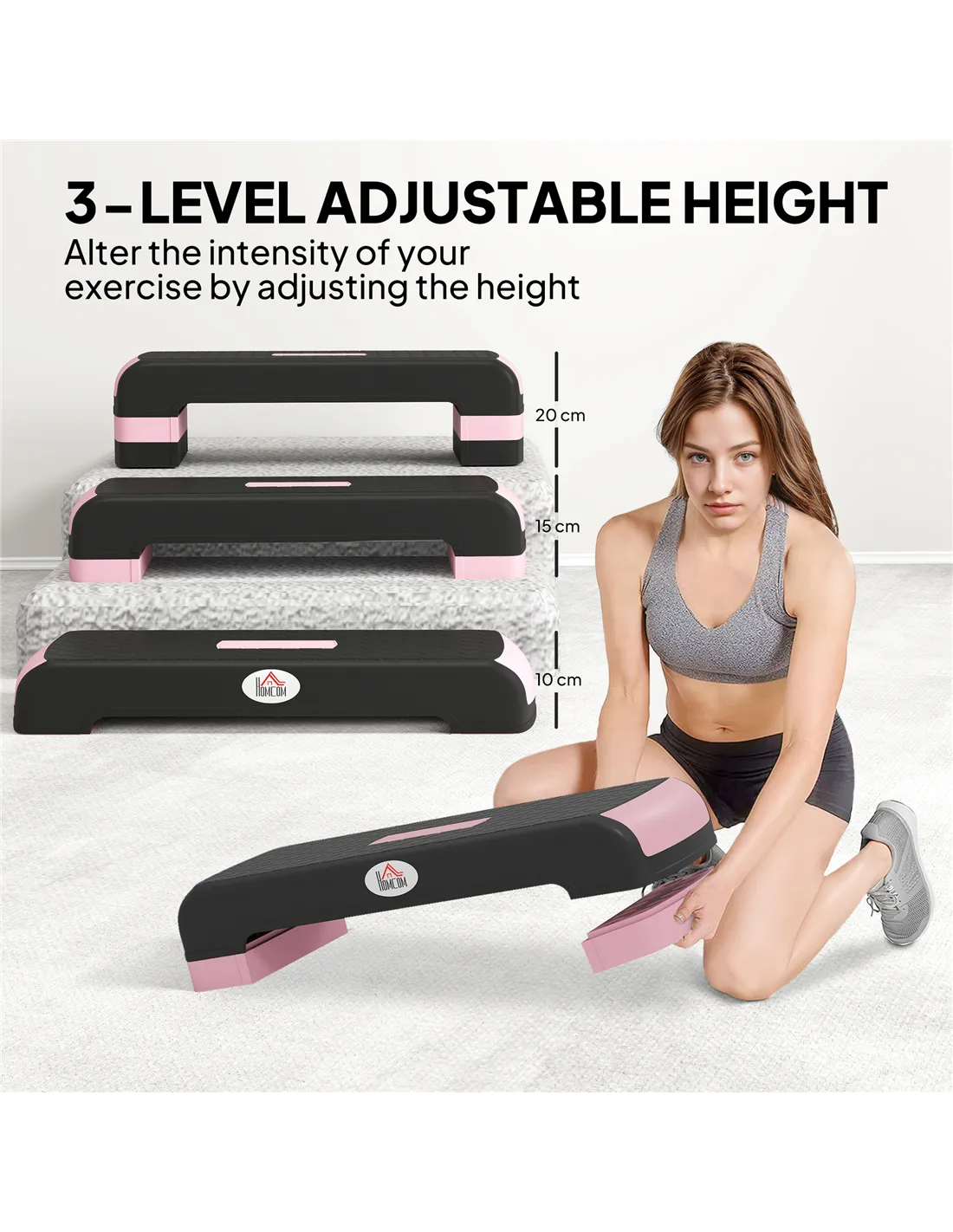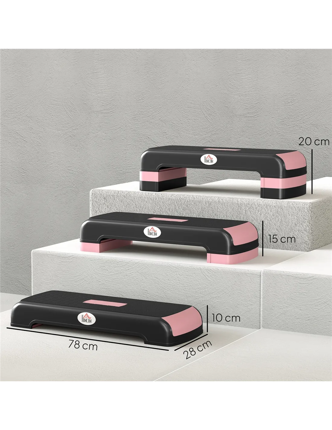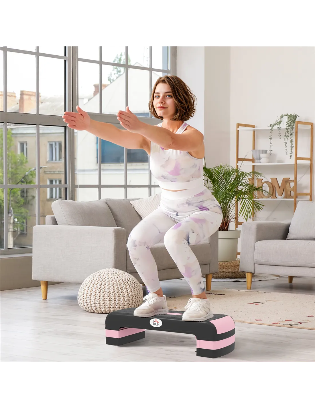 HOMCOM Aerobic Step with 3-Level Adjustable Heights for Home, Office Exercise, Black and Pink