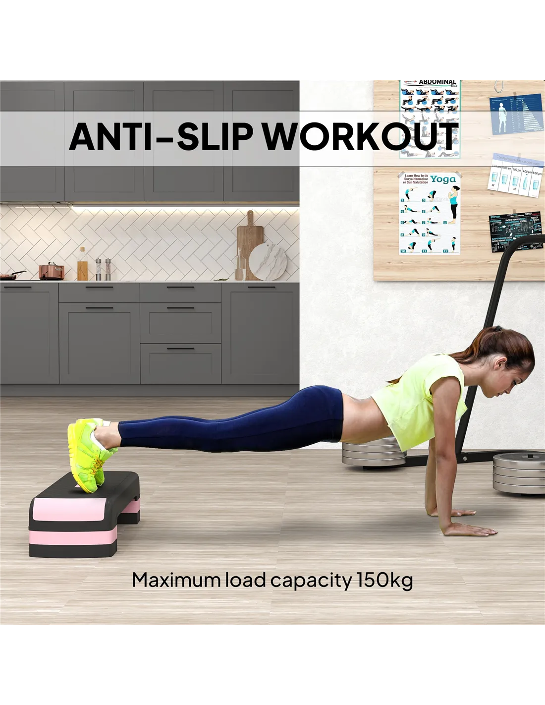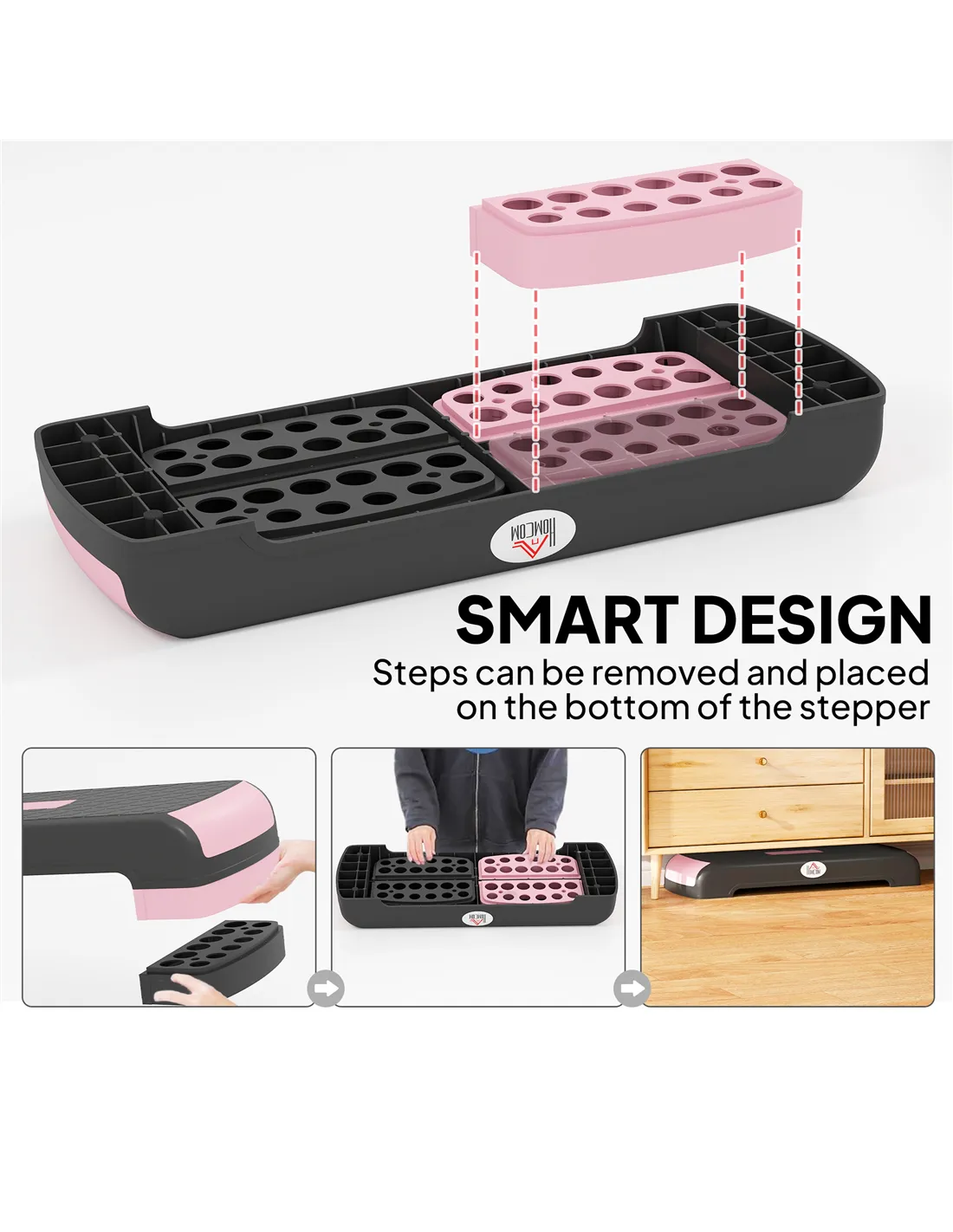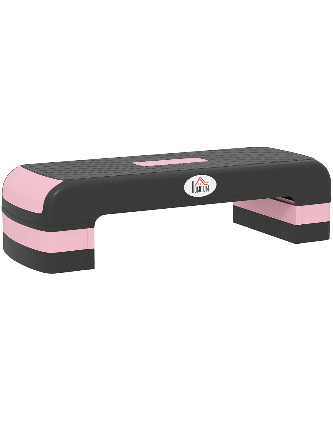 HOMCOM Aerobic Step with 3-Level Adjustable Heights for Home, Office Exercise, Black and Pink