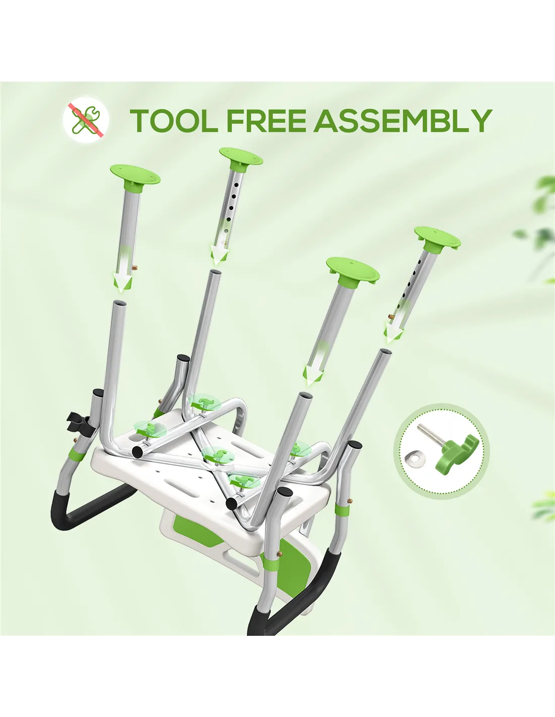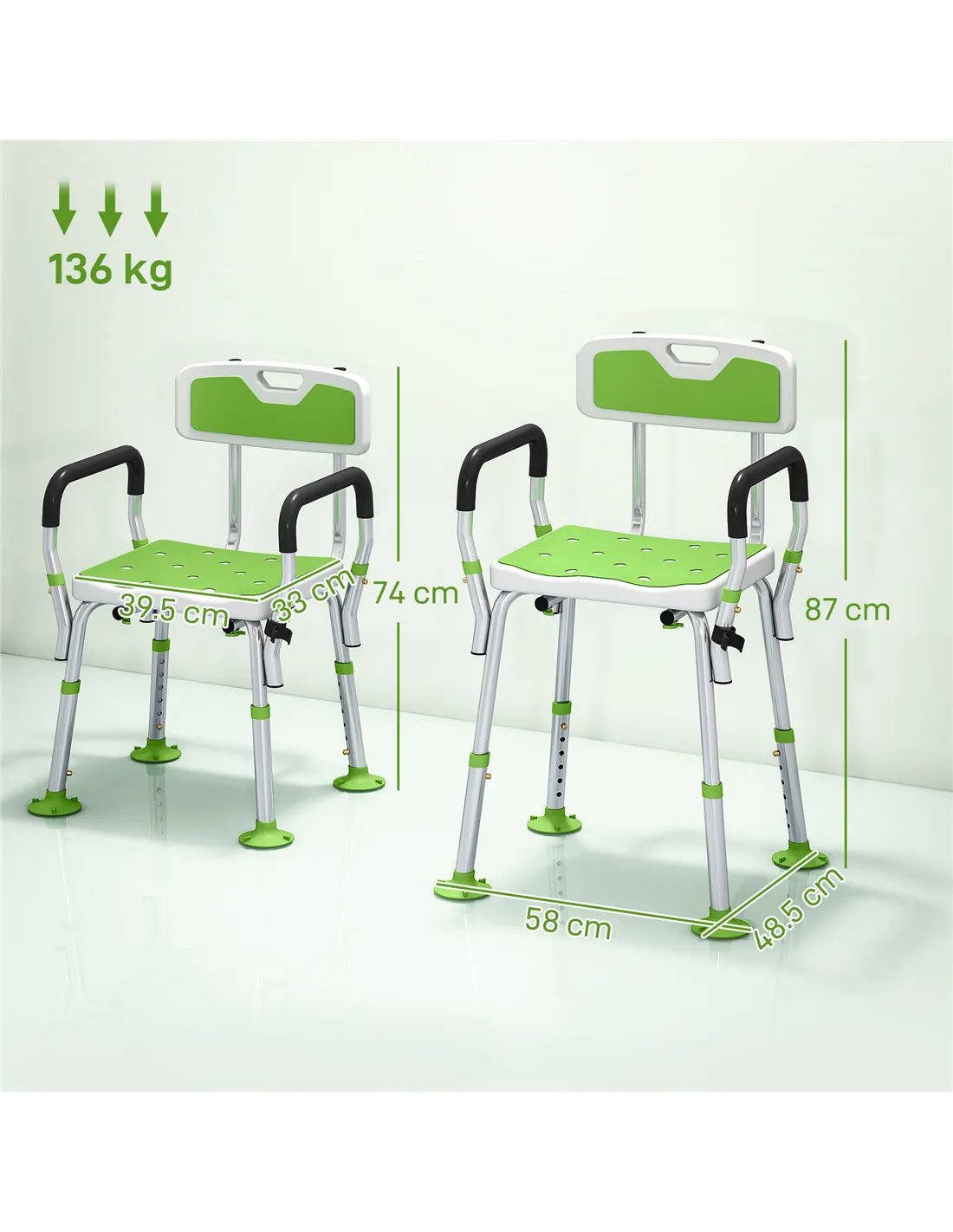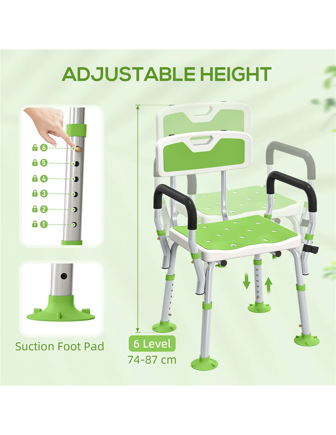 HOMCOM EVA Padded Shower Chair for the Elderly and Disabled, Height Adjustable Shower Stool with Back and Arms, 4 Suction Foot Pads, Green