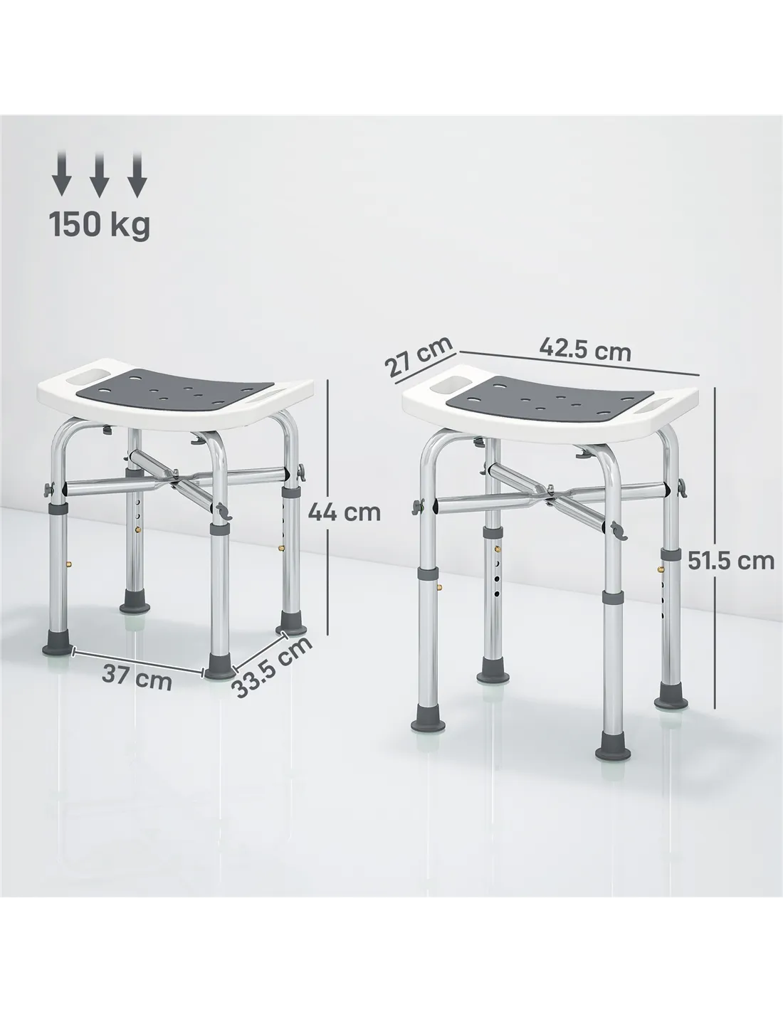 - A: The HOMCOM 44-51.5cm Aluminium Frame Shower/Bath Stool supports a maximum load of 150kg.