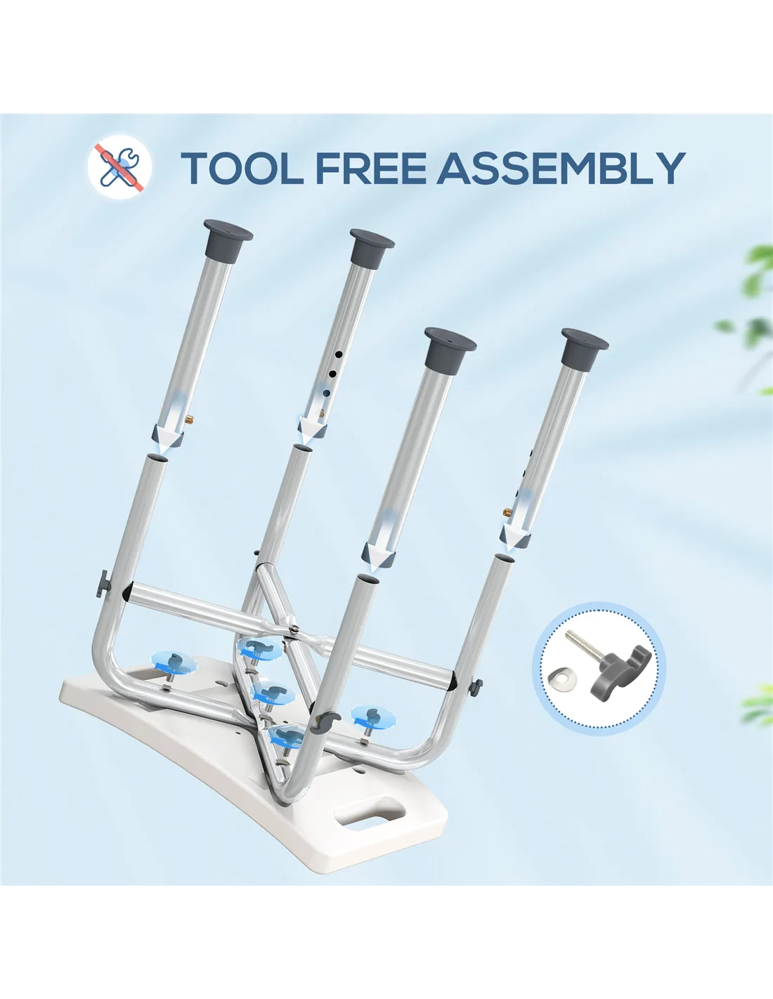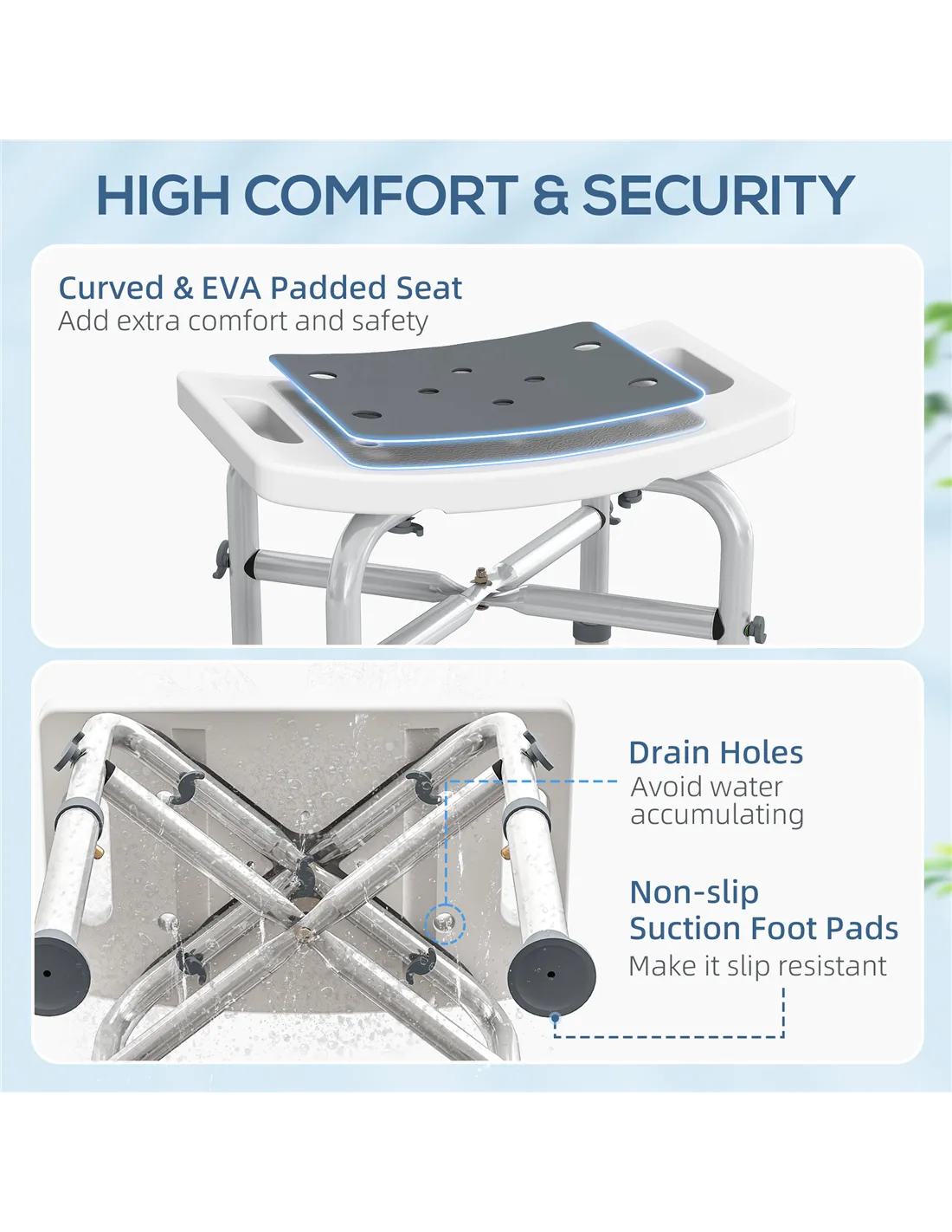 The HOMCOM 44-51.5cm Aluminium Frame Shower/Bath Stool in Grey delivers essential support for showering or bathing. This specific shower chair benefits the elderly, those with injuries, and individuals needing extra stability. You adjust the seat to one of four different heights. This ensures you find your most comfortable and secure sitting position. The stool features a curved, padded seat, enhancing user comfort for its intended purpose. Its strong aluminium frame incorporates an X-bar, providing critical additional support. Four large suction foot pads secure the stool firmly, ensuring high safety and stability during all uses. This Homcom stool supports a maximum load of 150kg and arrives fully assembled. It is ready for immediate placement in your bathroom, designed for residents across the UK.