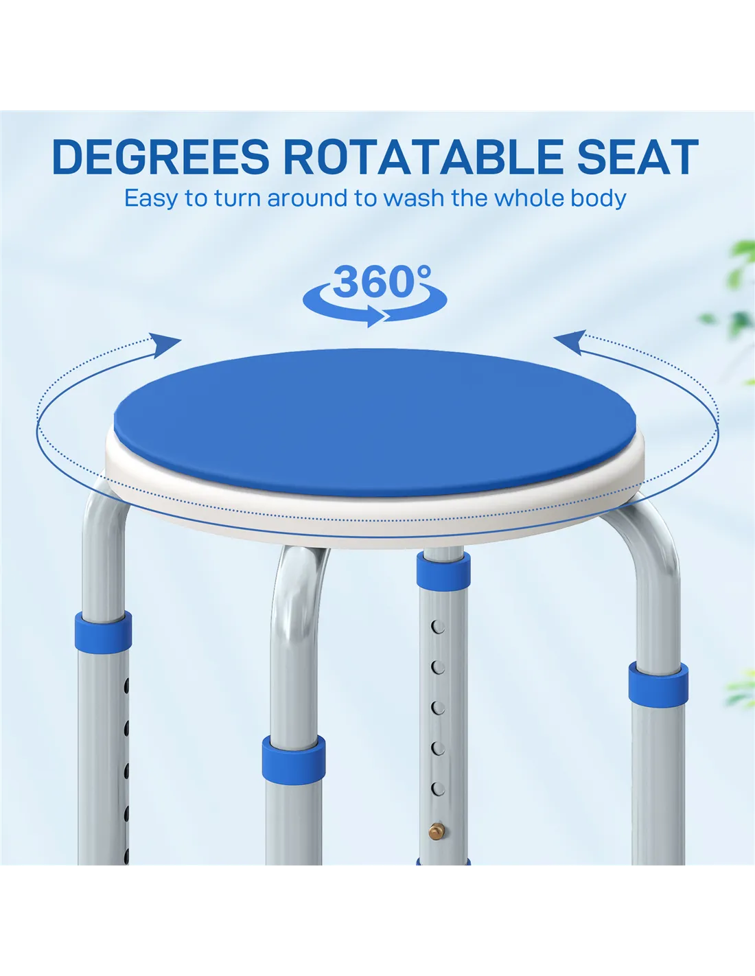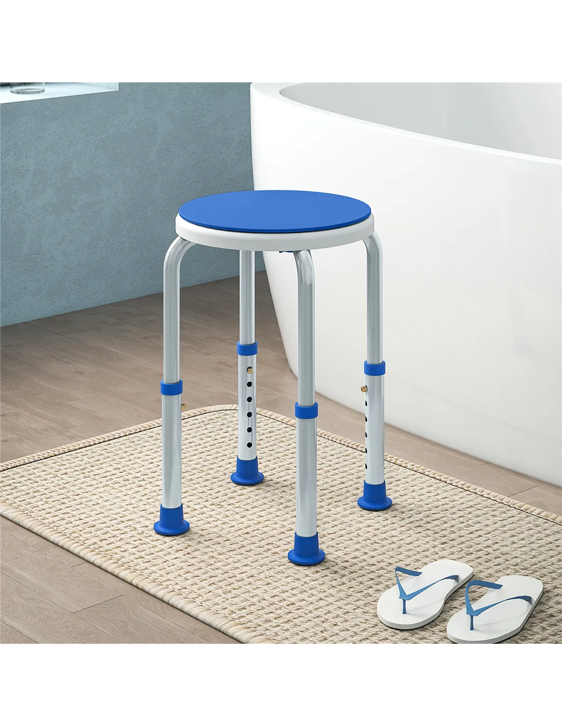 HOMCOM 360° Swivel Shower Chair, Height Adjustable Aluminium Shower Stool with Non-Slip Feet for Disabled, Elderly, Blue