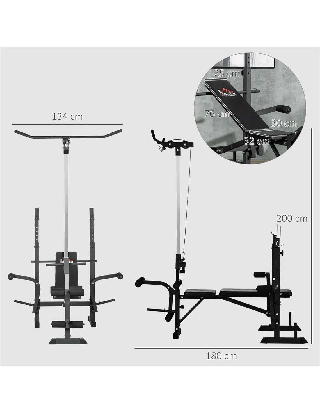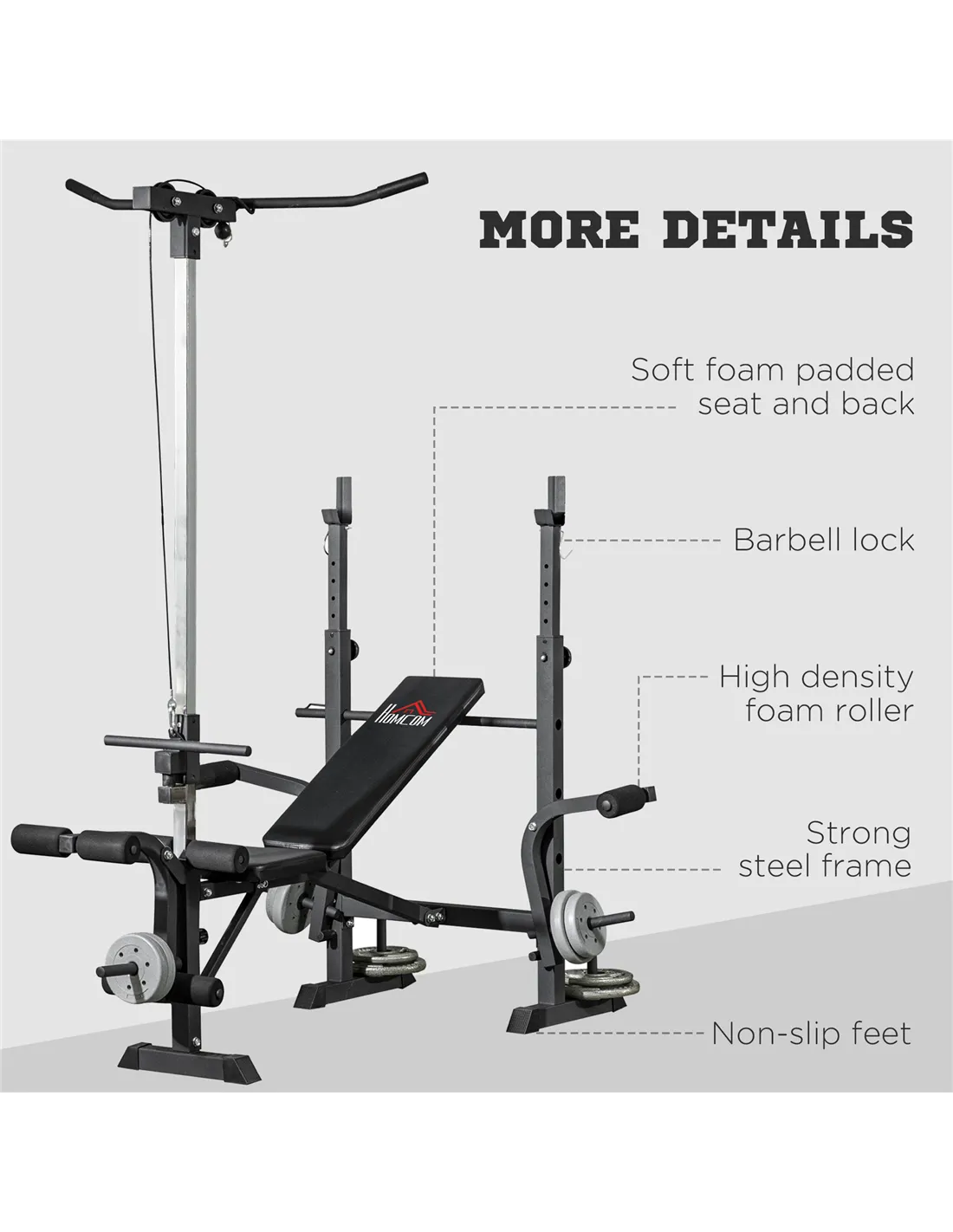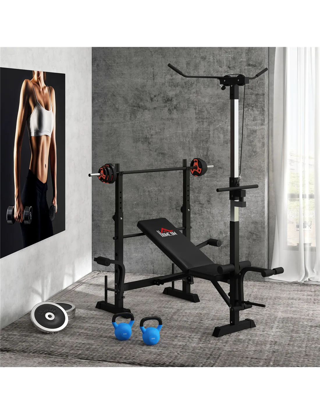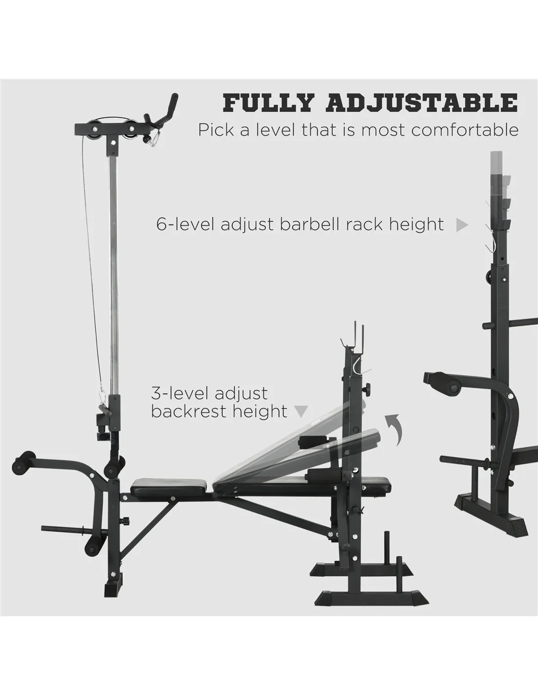 HOMCOM Adjustable Weight Bench with Pulley System, Incline Bench Press Set with Squat Rack, Leg Developer, Butterfly and Weight Storage, for Home Gym Full Body Workout