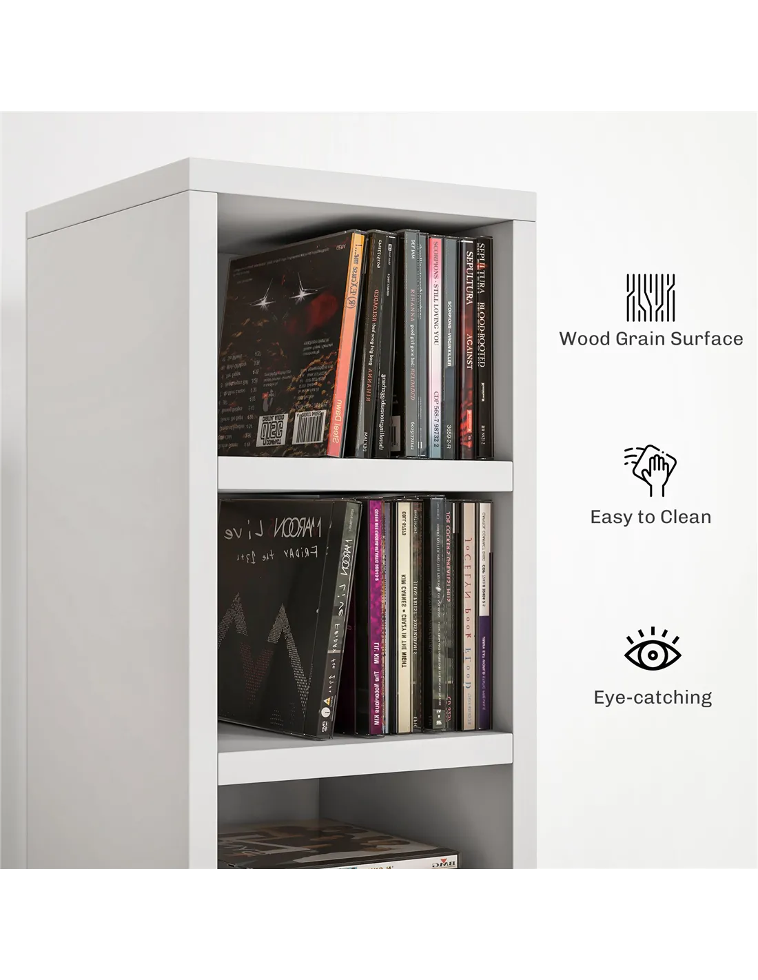 - 12-tier design, holds up to 204 CDs efficiently