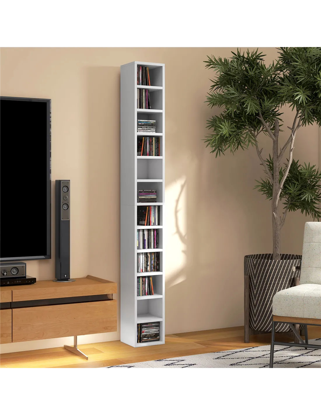 HOMCOM 204 CD Tall Narrow Media Storage Tower - White