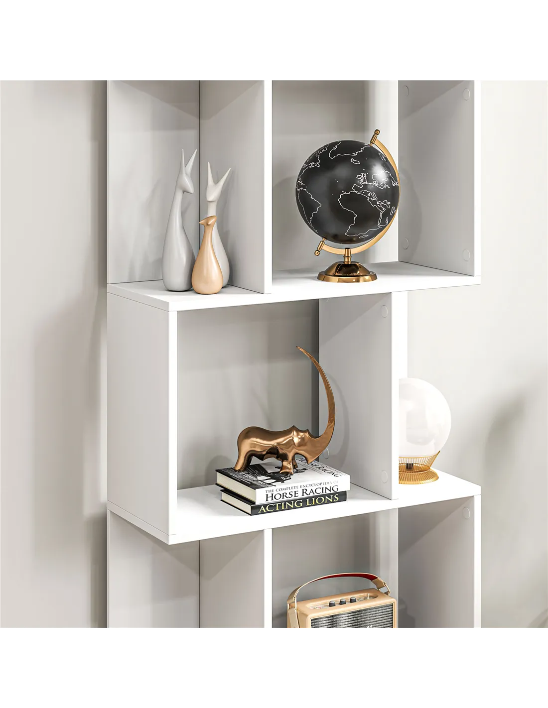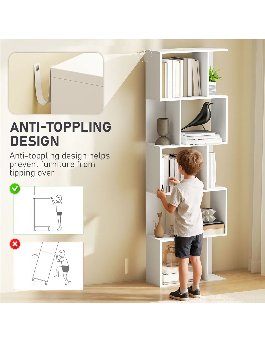 HOMCOM Bookcase, S-Shaped Wooden Bookshelf, 5 Tiers Freestanding Storage Shelf, Home Office Display Stand Rack, White