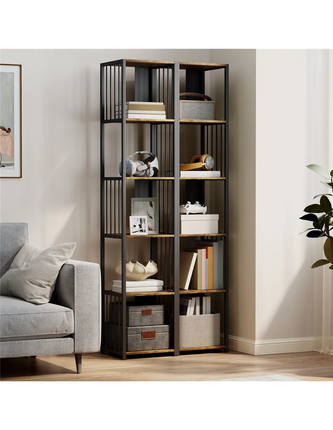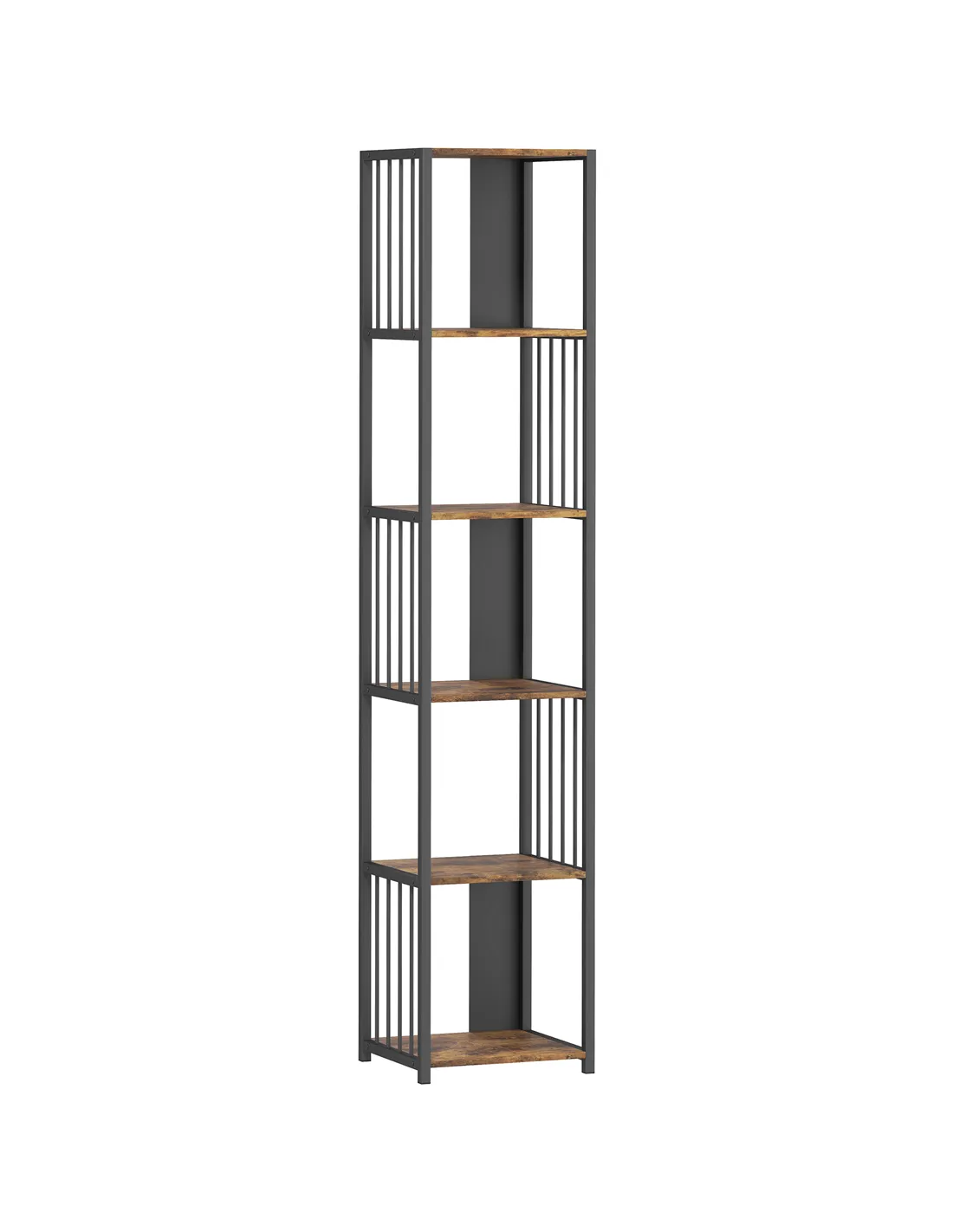 HOMCOM 5-Tier Bookshelf with Steel Frame - Rustic Brown
