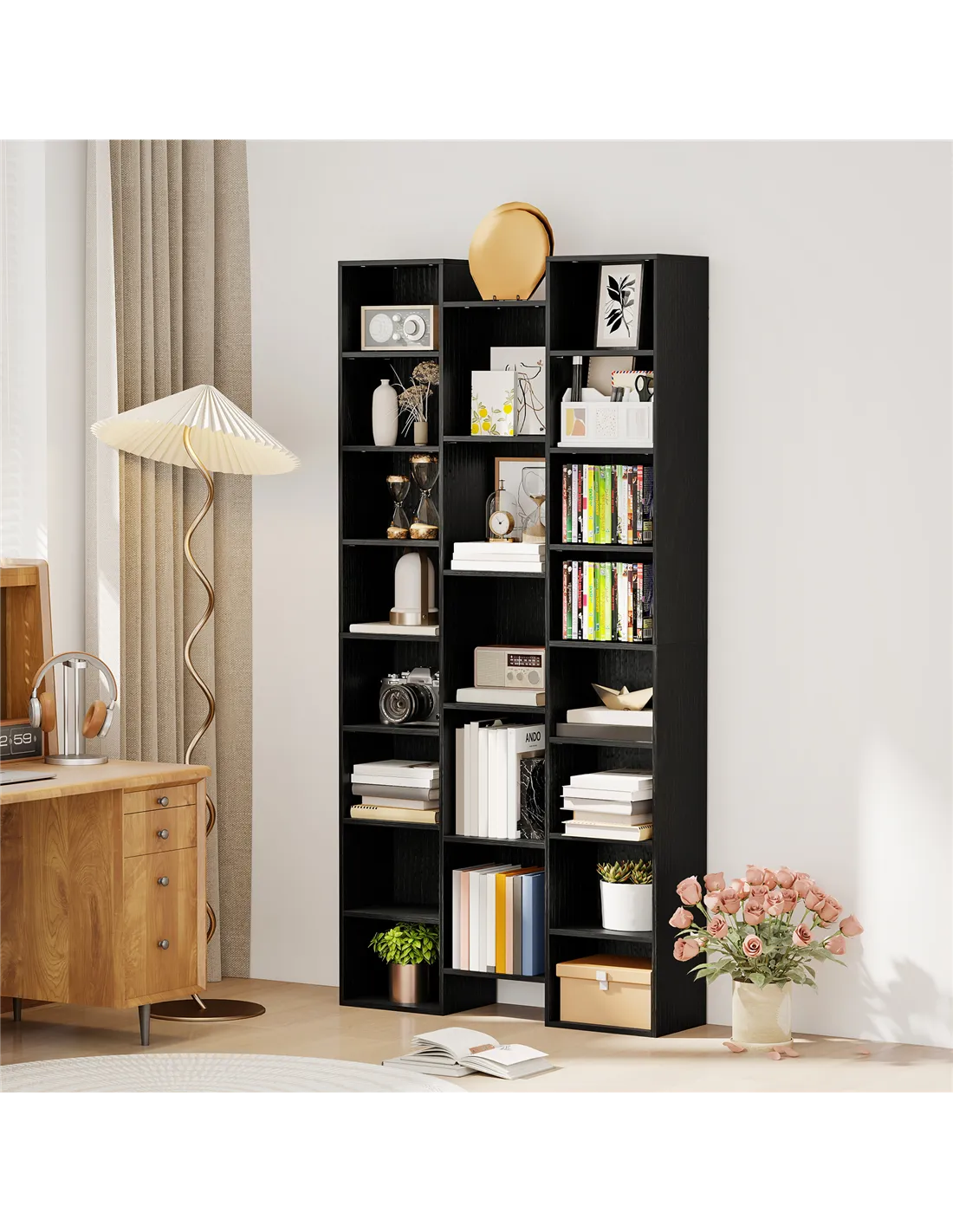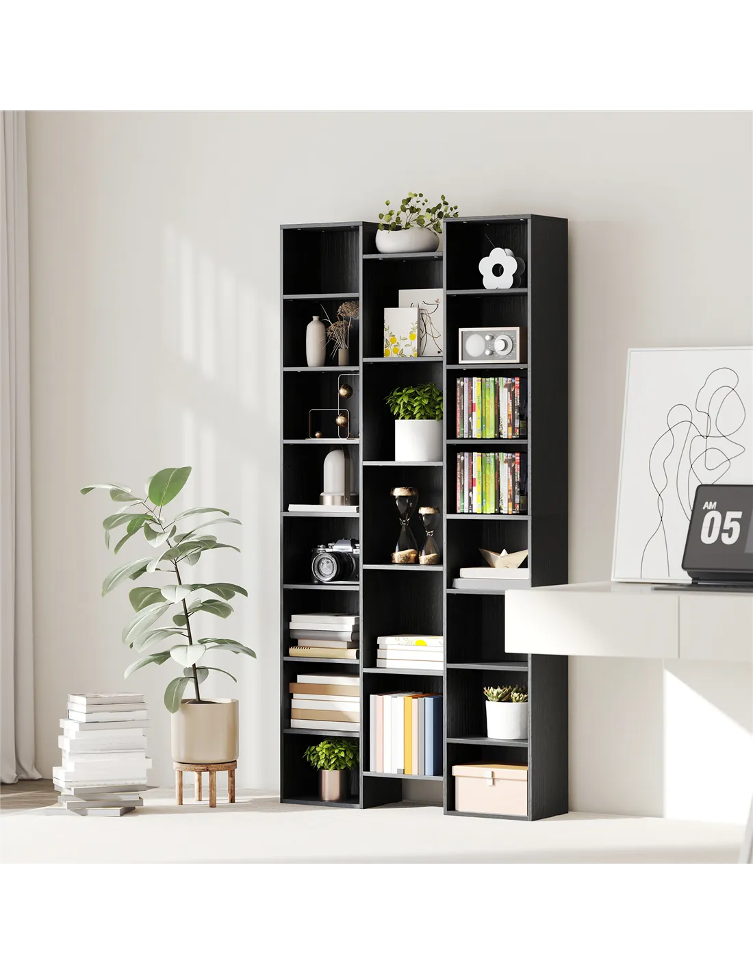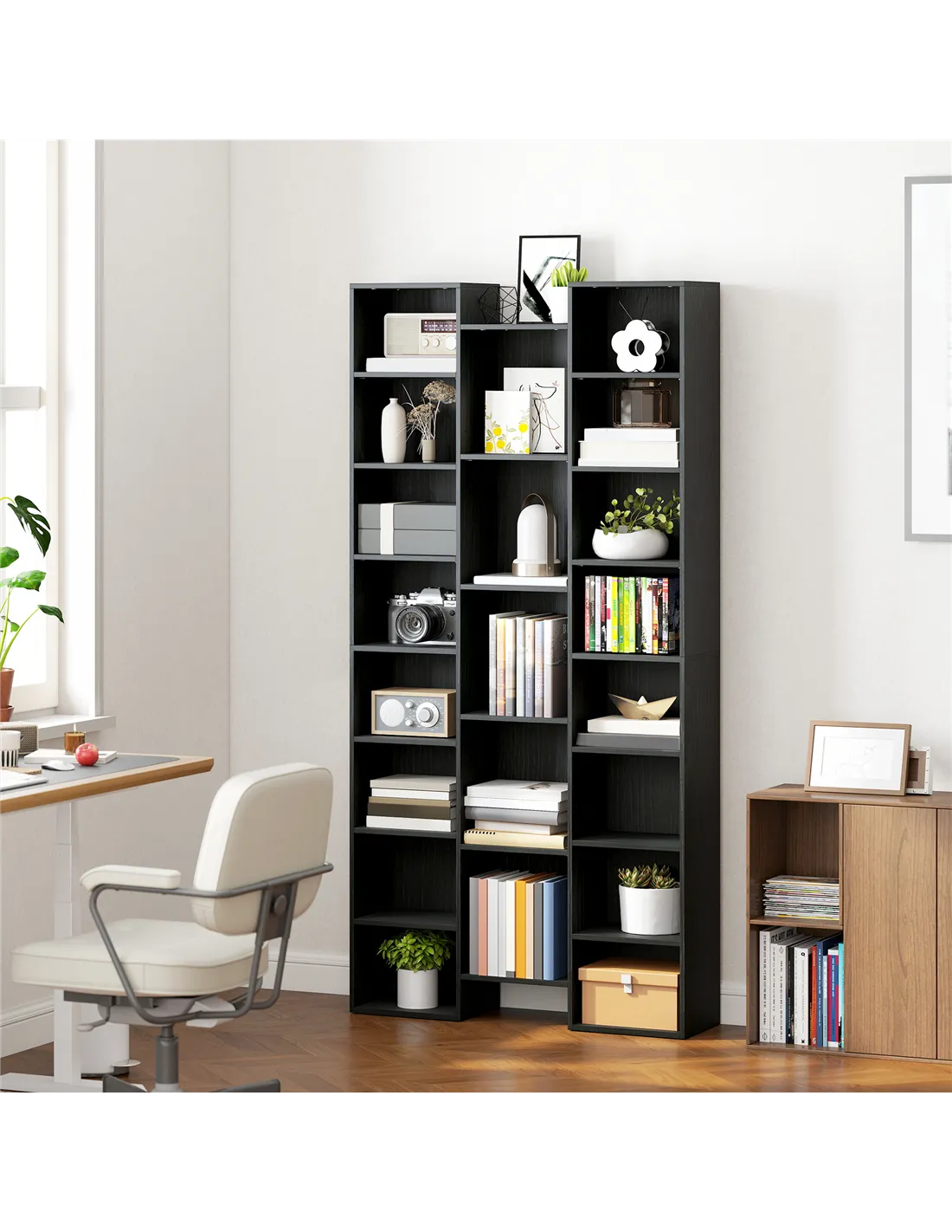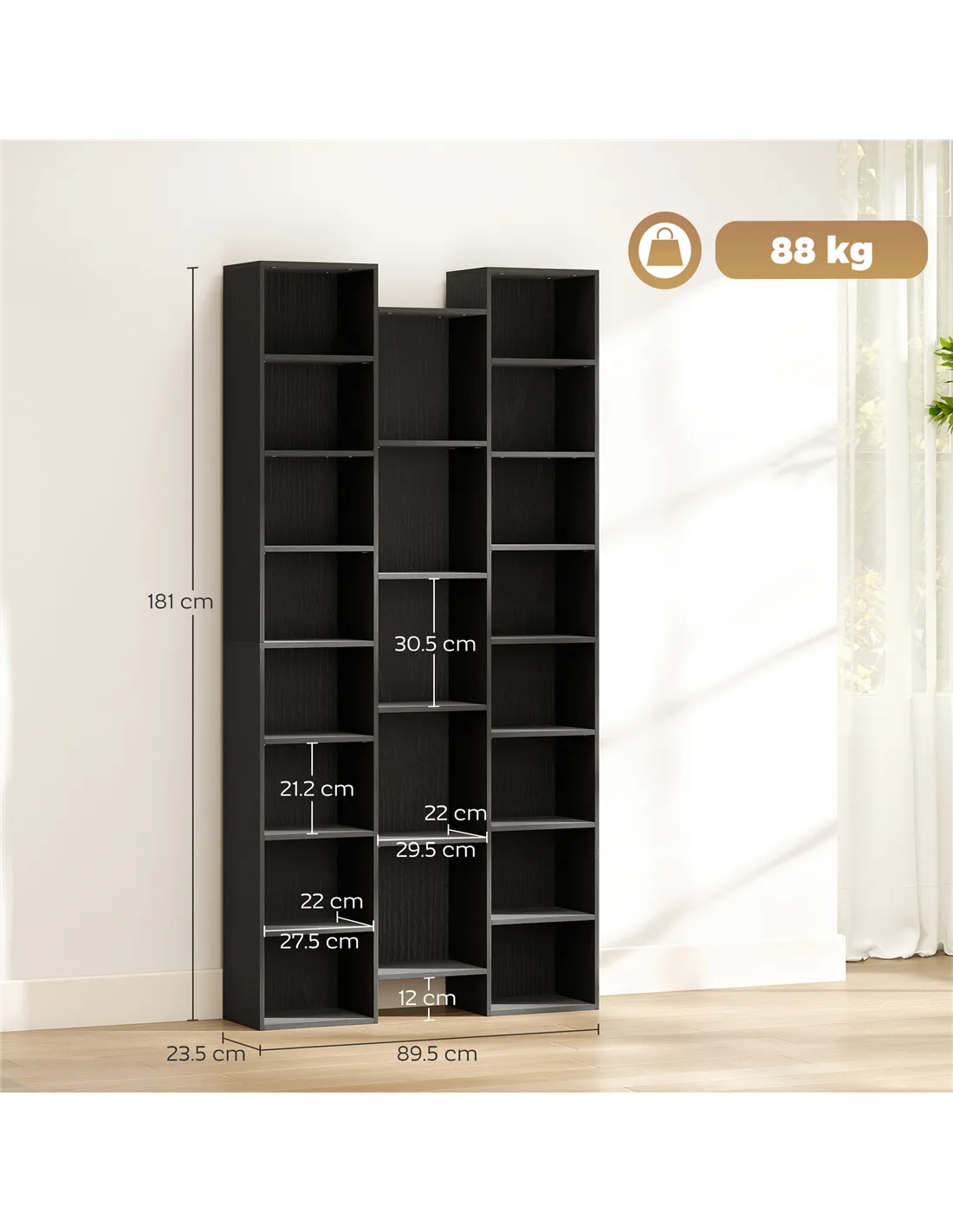 Maximise your home's organisation with the HOMCOM 21-Compartment Bookshelf in black, a versatile storage solution designed for UK residences. This tall bookcase provides extensive capacity for books, ornaments, and display items across 21 individual compartments. Ten three-position adjustable shelves offer tailored storage, accommodating both small decorative pieces and larger volumes with practical adaptability. Its sleek black finish integrates seamlessly into diverse interior styles, suitable for living rooms, hallways, and bedrooms alike. Constructed from robust particle board, this unit delivers everyday durability and reliable stability. Integrated anti-tipping hardware ensures secure wall attachment, enhancing safety within your home environment. A 12 cm elevated base simplifies floor cleaning, promoting a consistently tidy space. This HOMCOM bookcase presents a practical, adaptable answer to your home storage requirements.