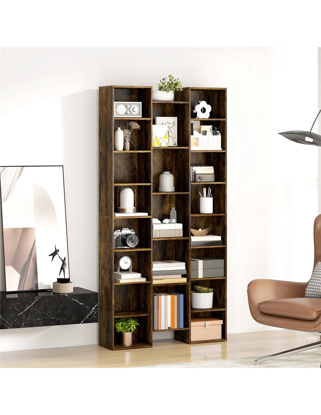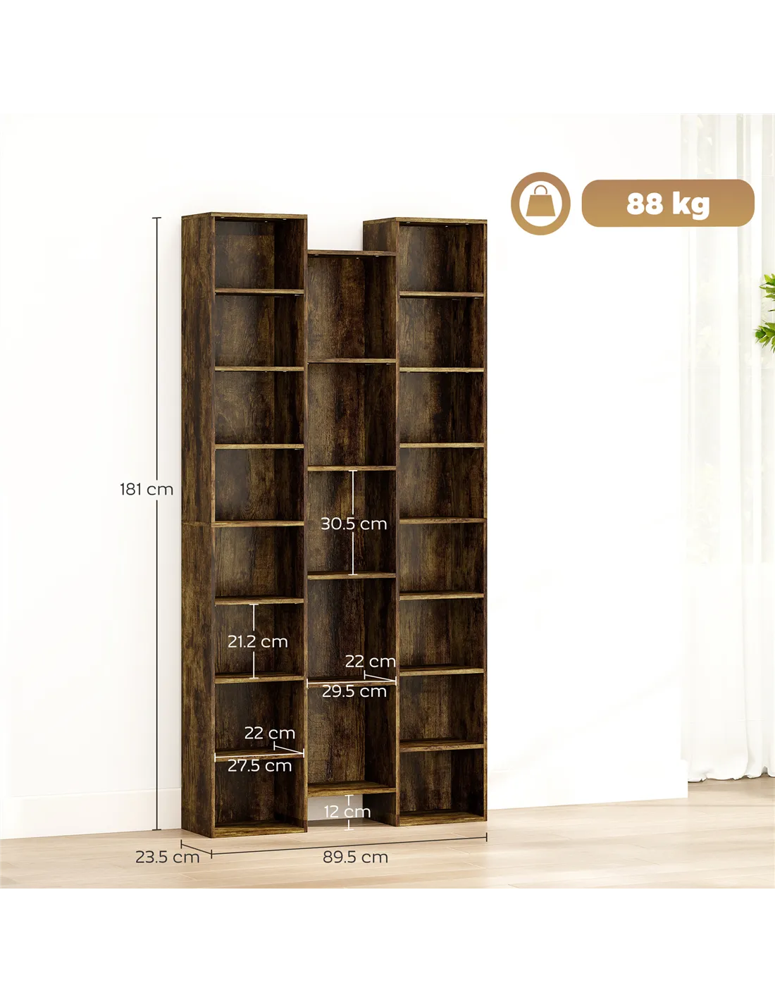 Maximise your home's organisation with the HOMCOM 21-Compartment Bookshelf in brown. This tall bookcase provides extensive storage for books, ornaments, and display items. Featuring 21 individual compartments, it ensures ample space for all your possessions. Ten shelves offer three-level adjustability, allowing you to customise storage for both smaller and larger items. Its practical design fits seamlessly into living rooms, hallways, or bedrooms, providing versatile placement options. Constructed from robust particle board, this unit is built for everyday reliability. Anti-tipping hardware is included for secure wall attachment, enhancing safety. The 12 cm elevated base simplifies cleaning underneath and protects your items from floor contact. This bookshelf offers a comprehensive solution for tidiness and display within your UK home.