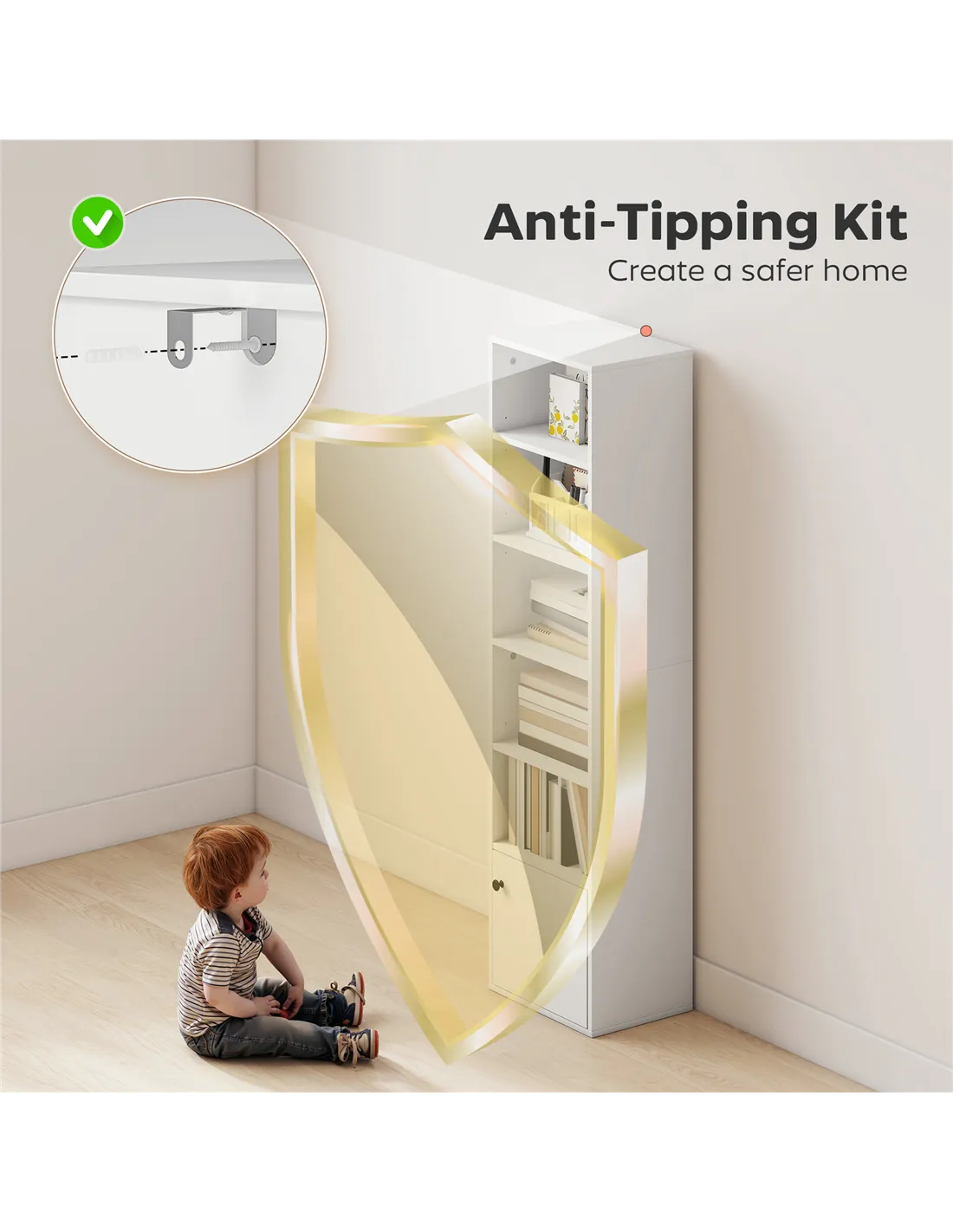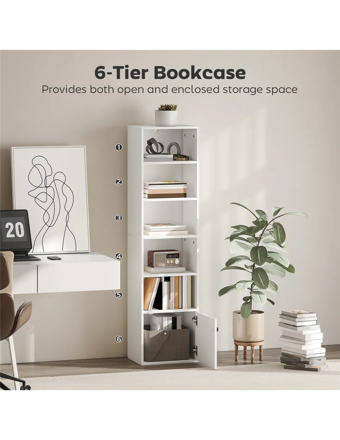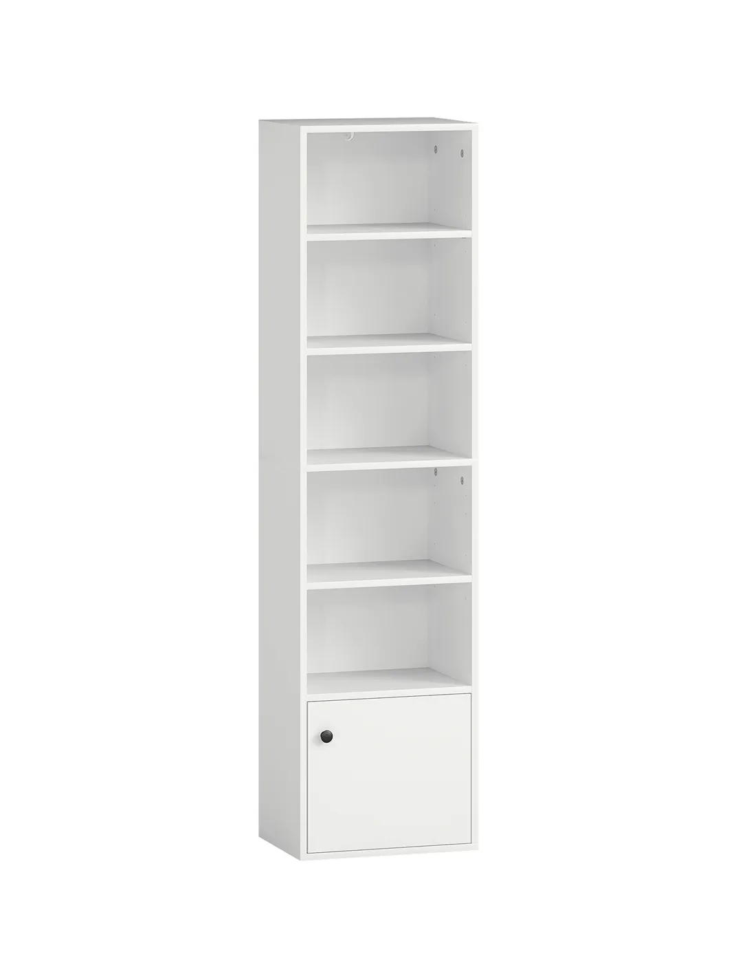 The HOMCOM 6-Tier 156 cm Tall Bookcase in White offers a robust storage solution for your living space. This slimline unit features a narrow 40L x 30W cm footprint, maximising vertical storage without occupying significant floor area. Organise your possessions across five open shelves and a discreet integrated cupboard. Three shelves provide adjustable height, accommodating various item sizes. Constructed from durable particleboard and MDF, this bookcase supports a substantial 56 kg total weight. Each shelf and the top surface handles 8 kg. An anti-tipping kit ensures stability, complementing non-slip foot pads that protect your floors. This versatile white bookcase provides functional storage for books, décor, and personal items, maintaining an organised home environment. Assembly is straightforward, providing a practical storage upgrade for any UK household.