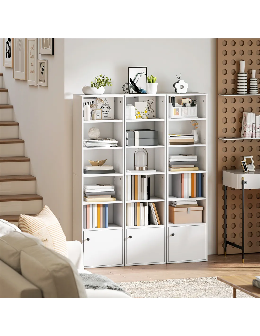 - A: This bookcase features five open shelves and one cupboard. Three of the shelves are adjustable, allowing you to customise storage space.