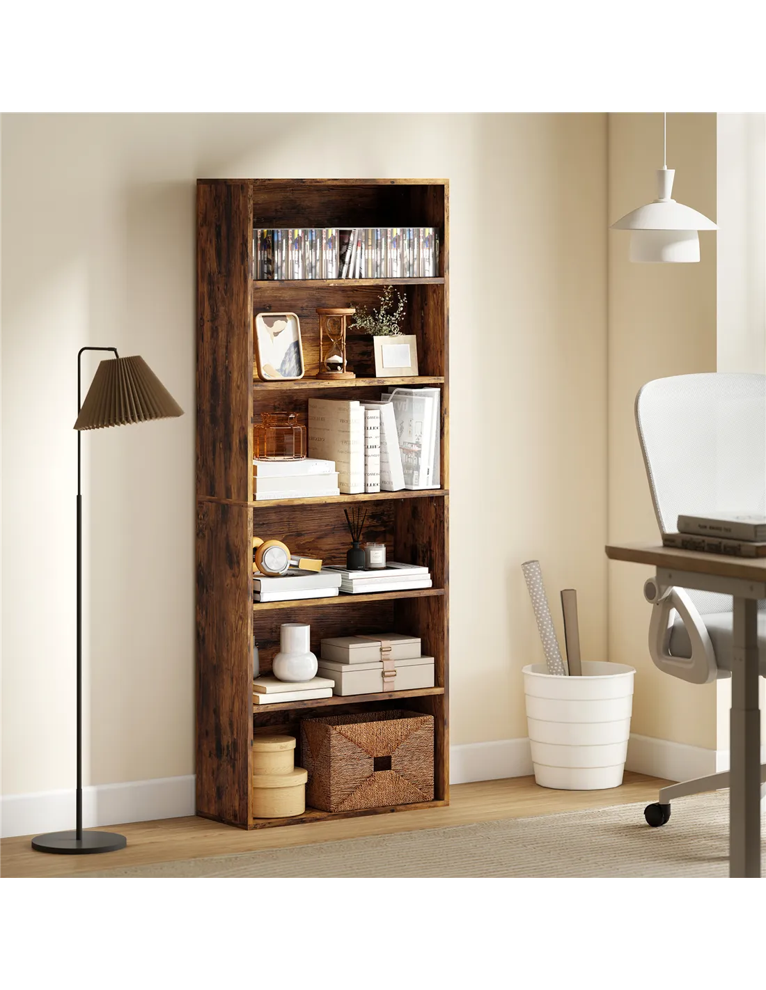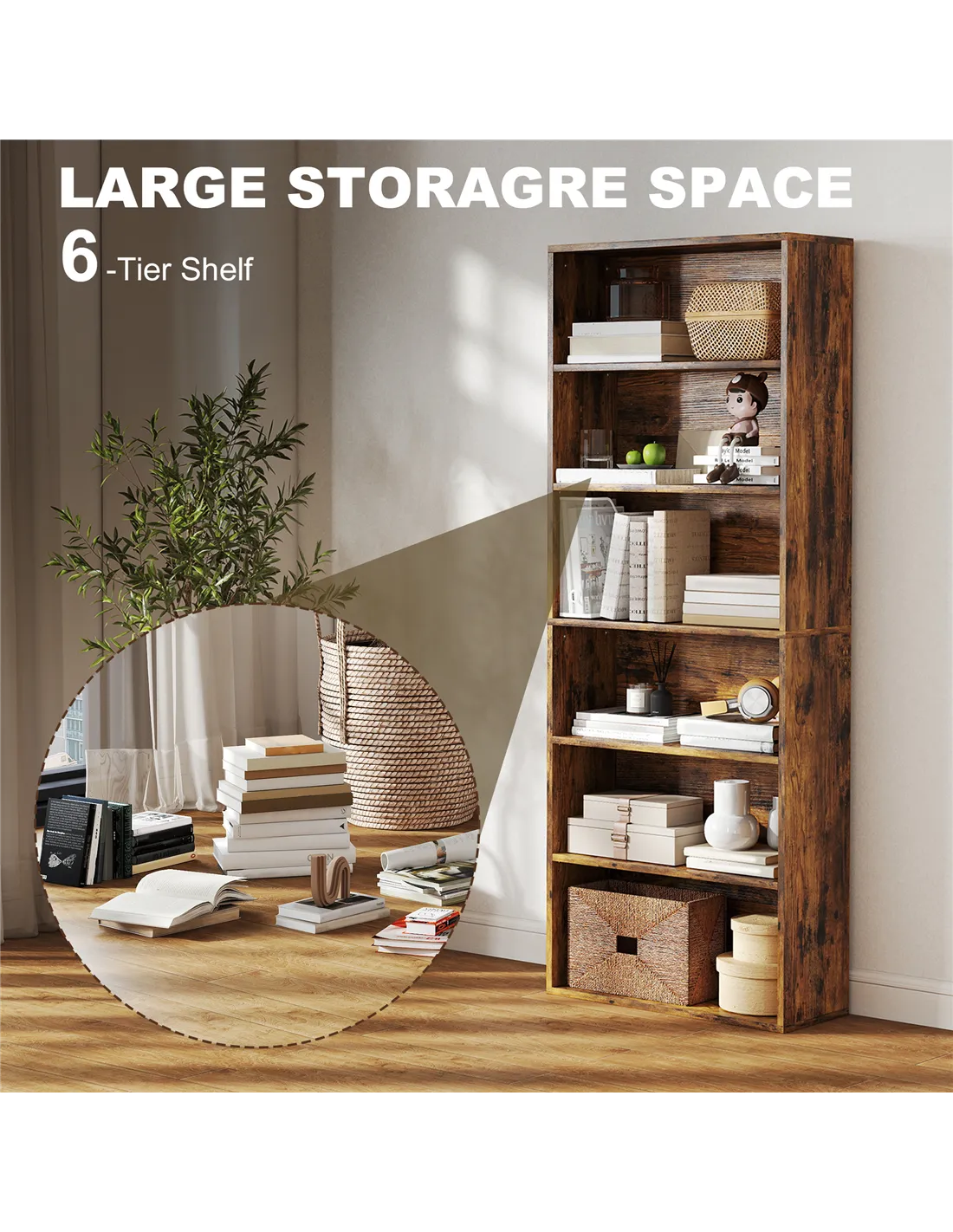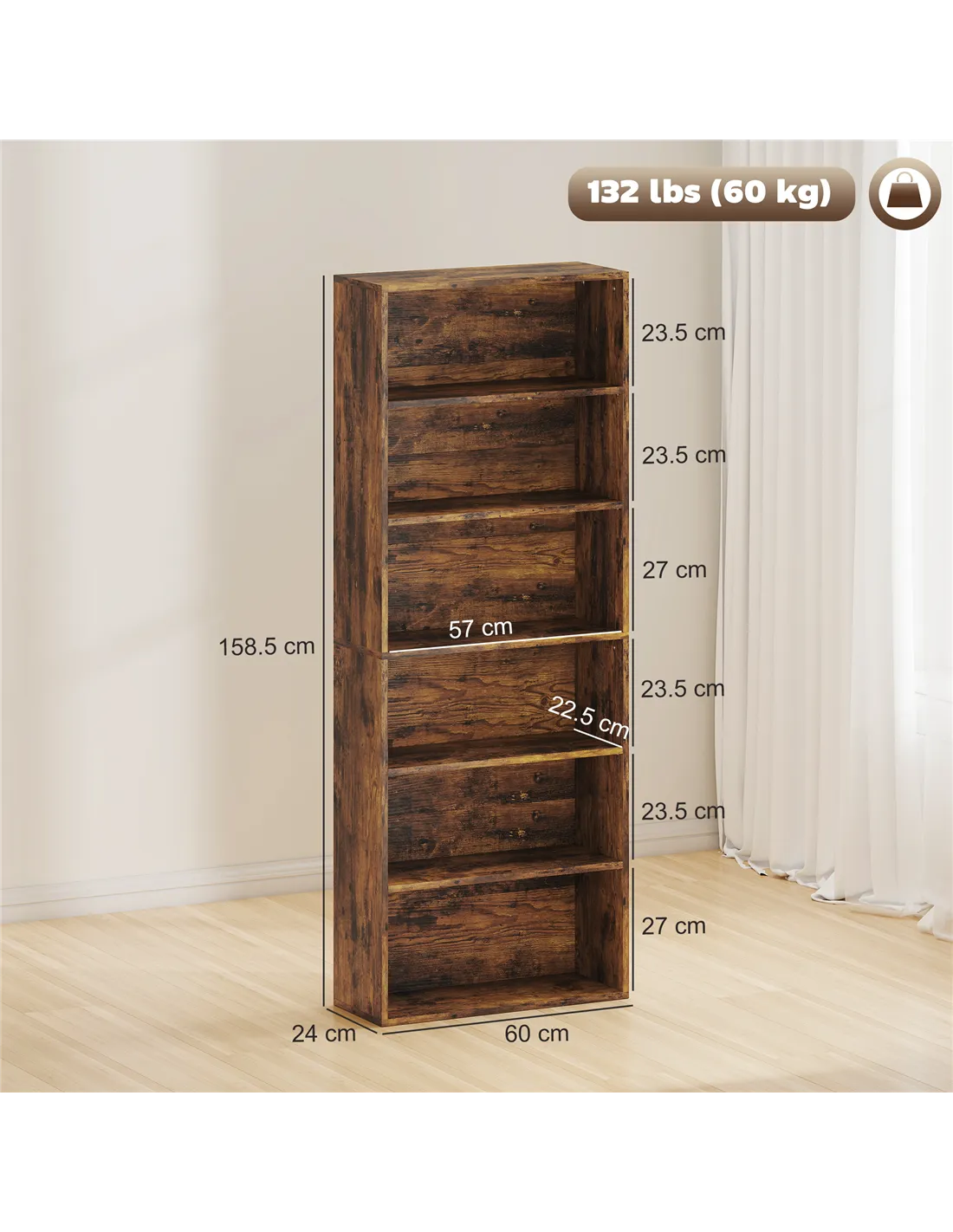 HOMCOM Six Shelf Bookcase - Rustic Brown