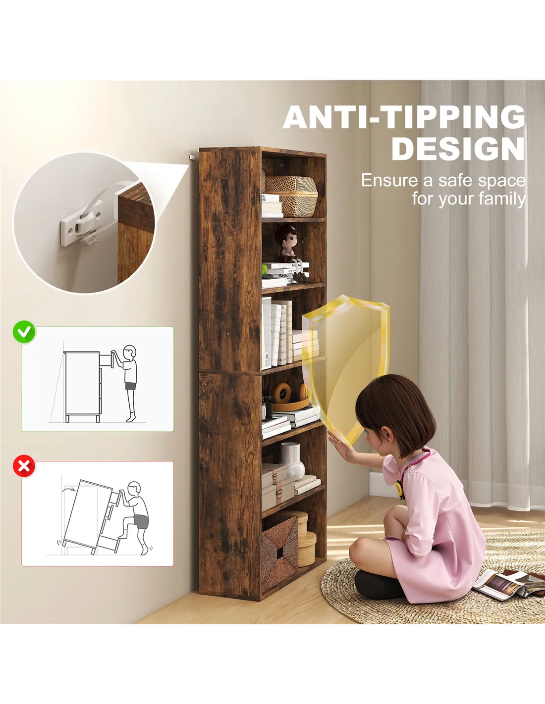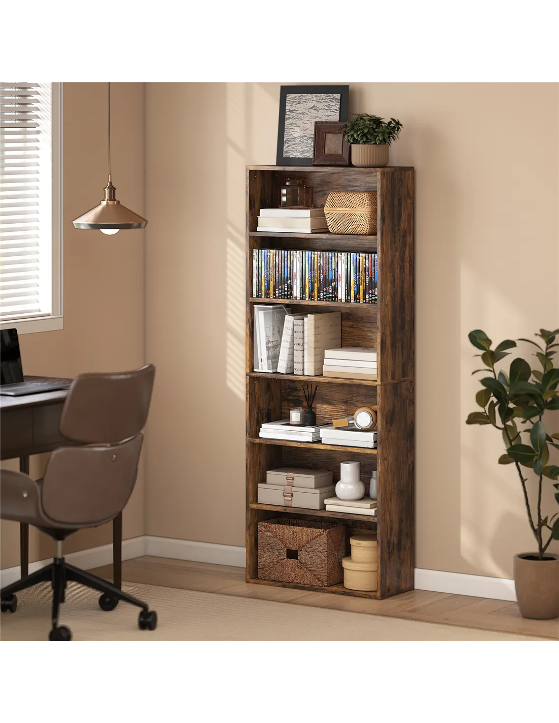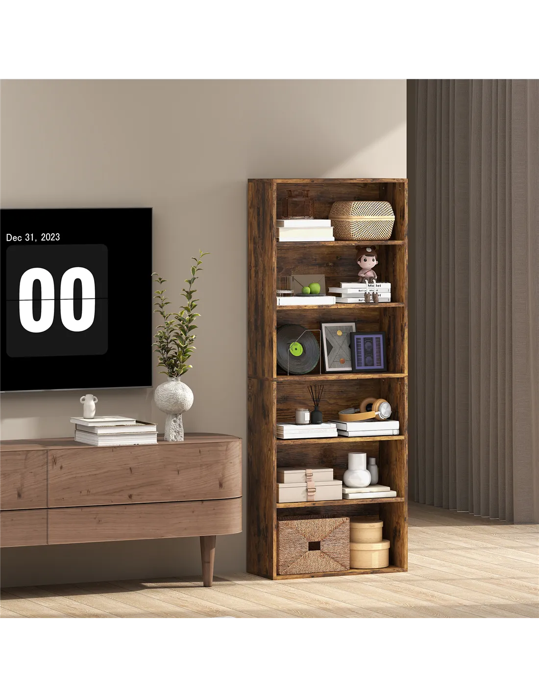 HOMCOM Six Shelf Bookcase - Rustic Brown