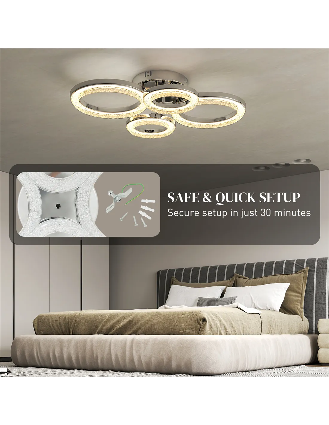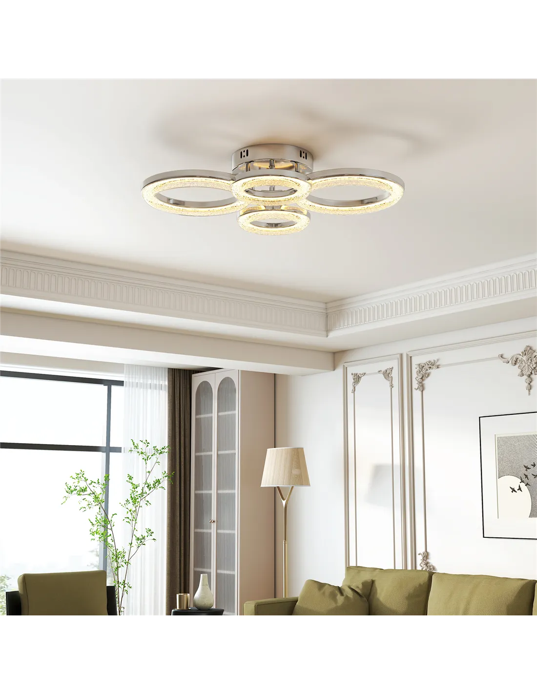 - Features an elegant four-ring design, becoming a stunning centrepiece in your room