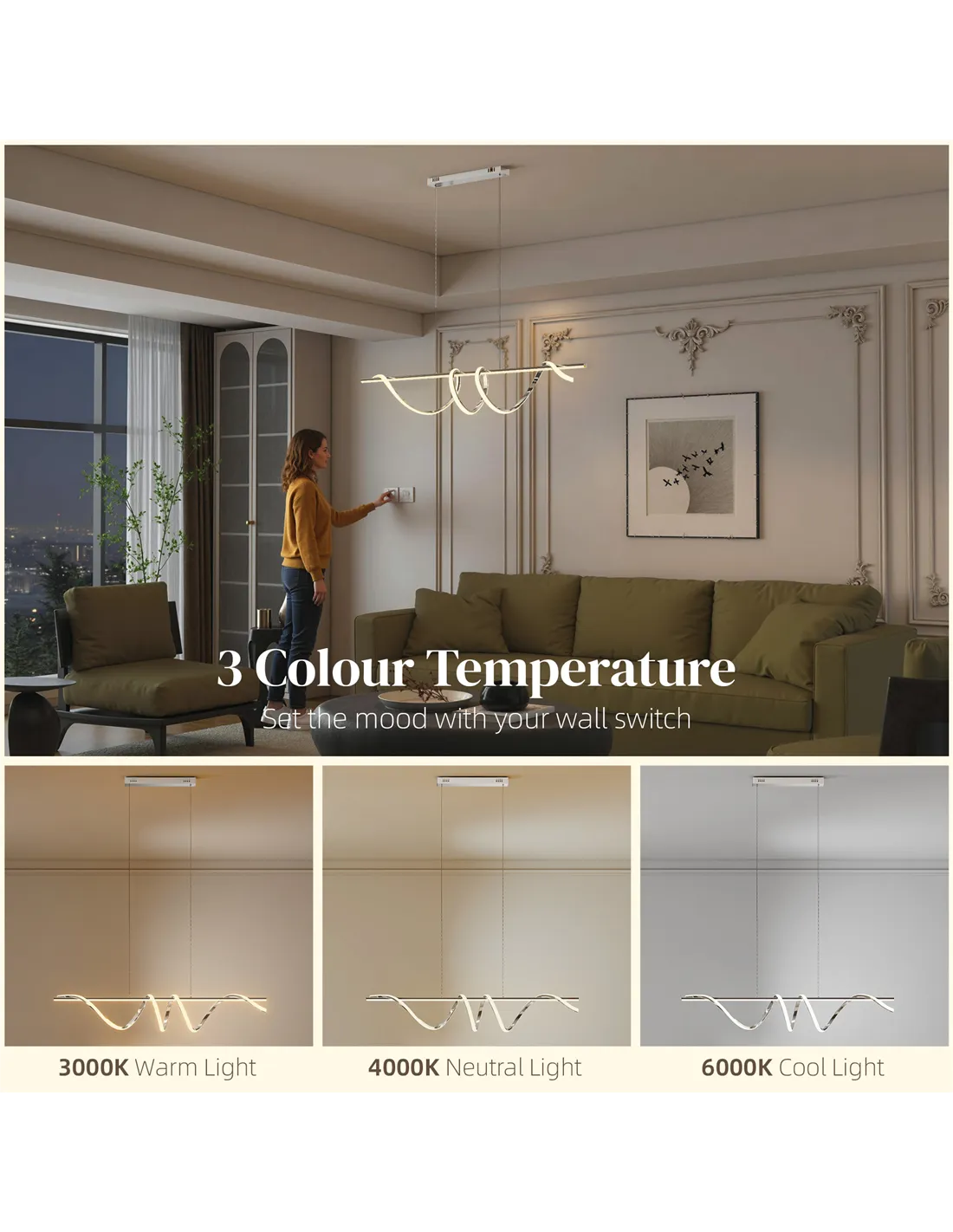 This HOMCOM Pendant Light provides versatile illumination for any modern UK home. Its sleek silver tone and 120 cm linear design serve as a sophisticated centrepiece. Easily switch between three colour temperatures: a warm 3000K for relaxed evenings, a neutral 4000K for daily tasks, or a bright 6000K for focused activities. This adaptability ensures your lighting matches every requirement. The integrated 45W LED delivers 3500 lumens, offering bright, energy-efficient light across your space. Adjust the hanging height up to 130 cm to perfectly suit your room. Its linear form distributes wide, even lighting, making it ideal for dining tables or kitchen islands. Elevate your interior with this functional and stylish lighting solution, available at FastDaddy. This fixture combines elegant design with practical lighting control.