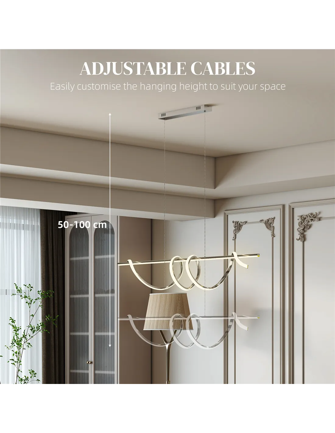 - The linear shape ensures wide, even lighting perfect for long dining tables