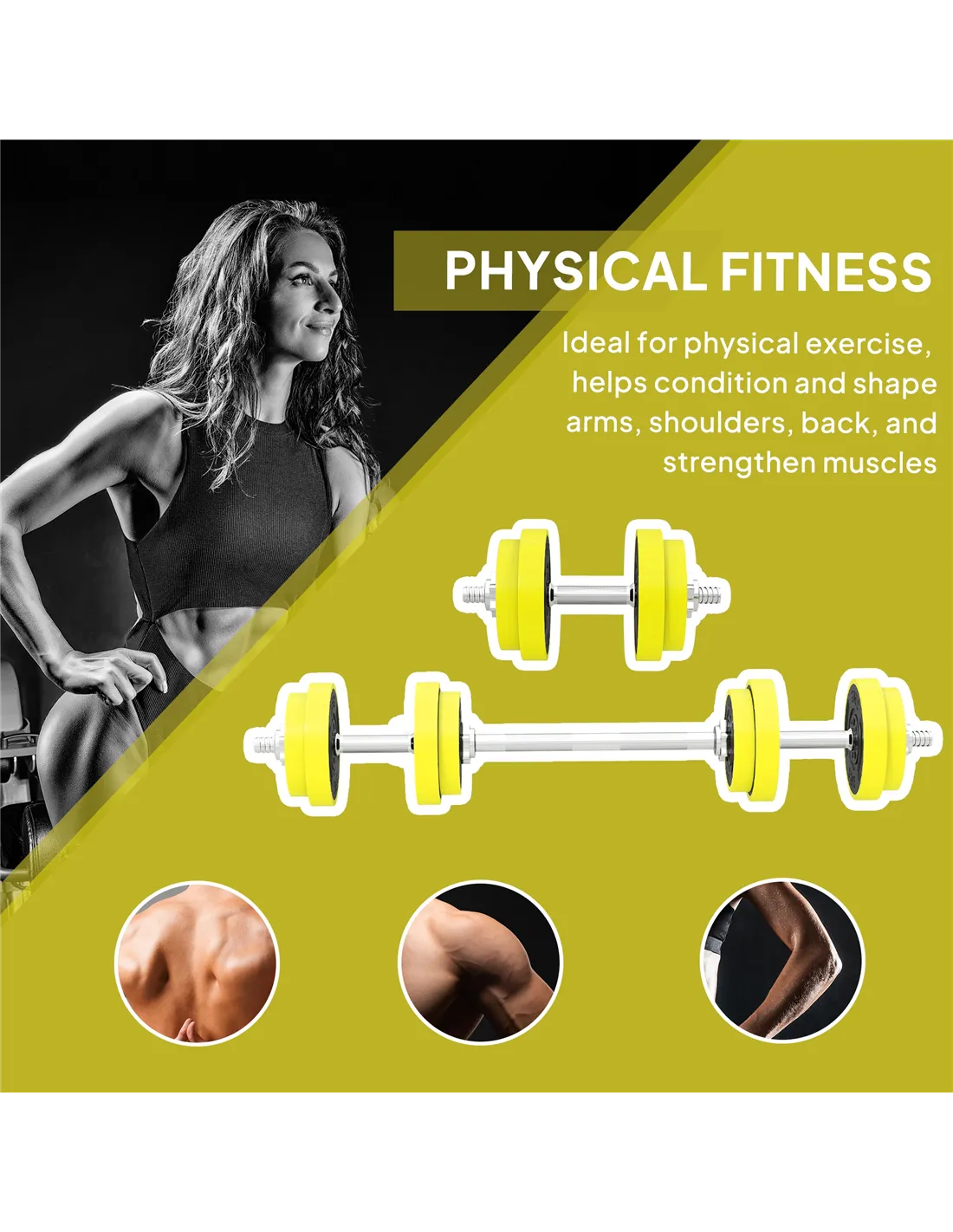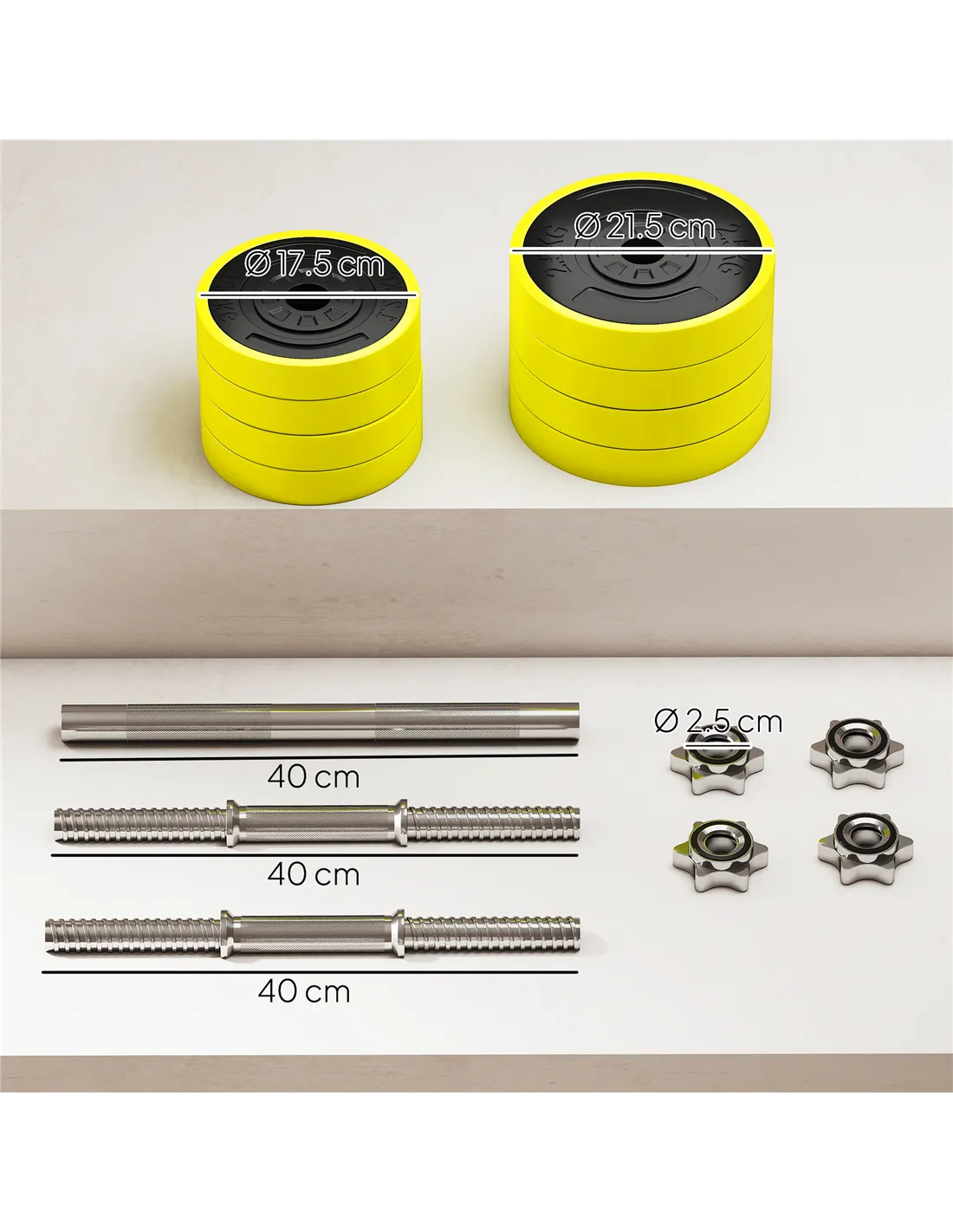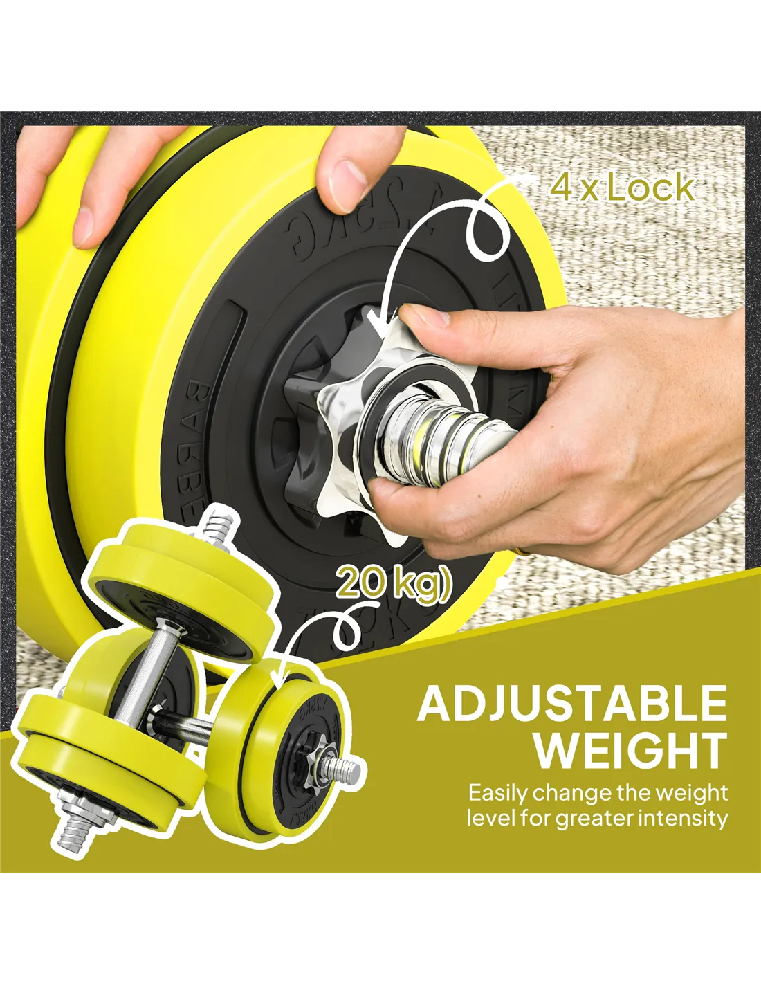 HOMCOM 20KGS 2-In-1 Dumbbell & Barbell Adjustable Set Strength Muscle Exercise Fitness Plate Bar Clamp Rod Home Gym Sports Area, Yellow